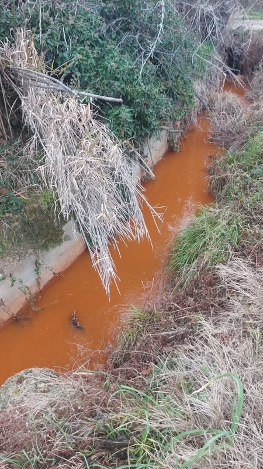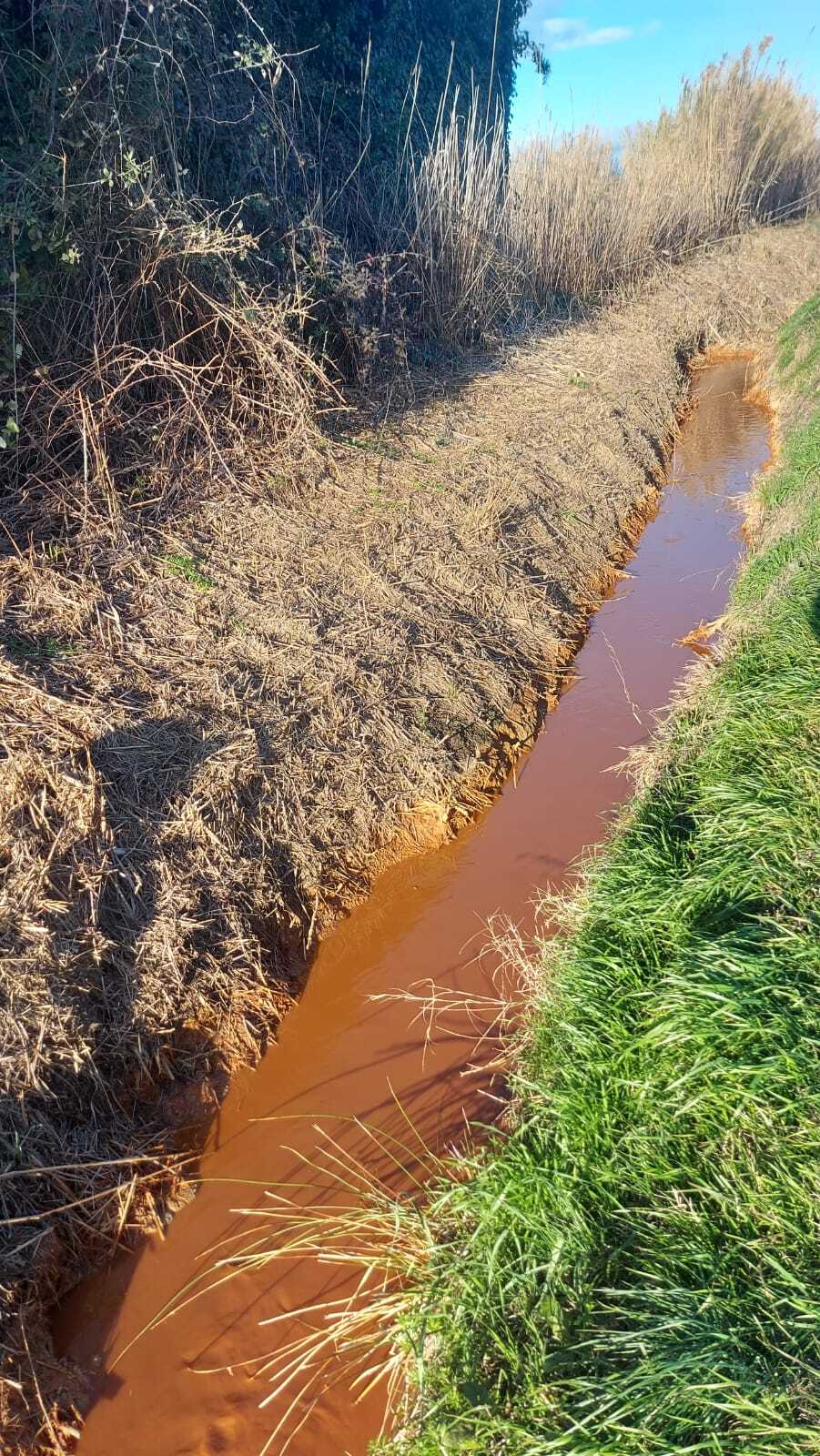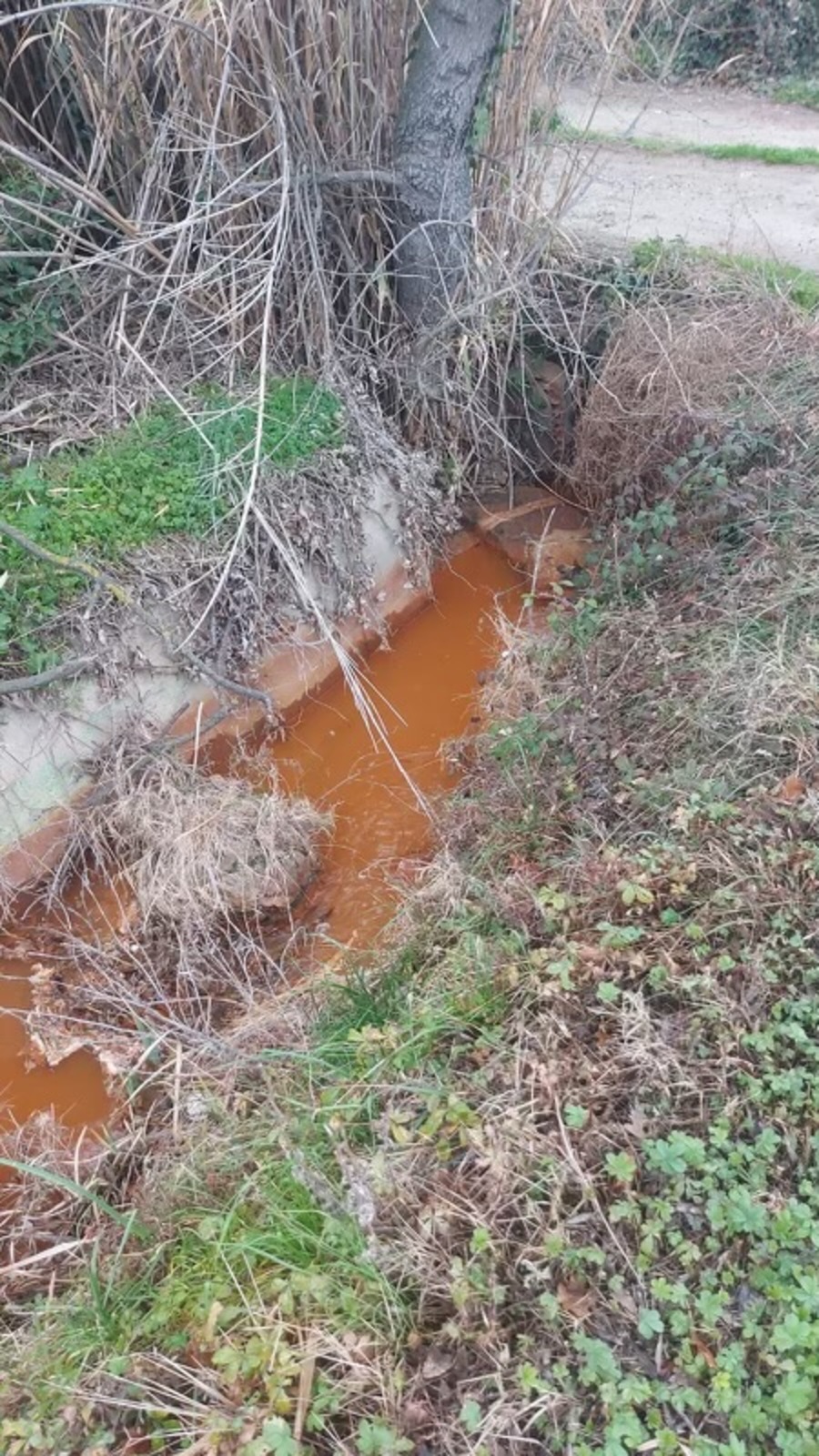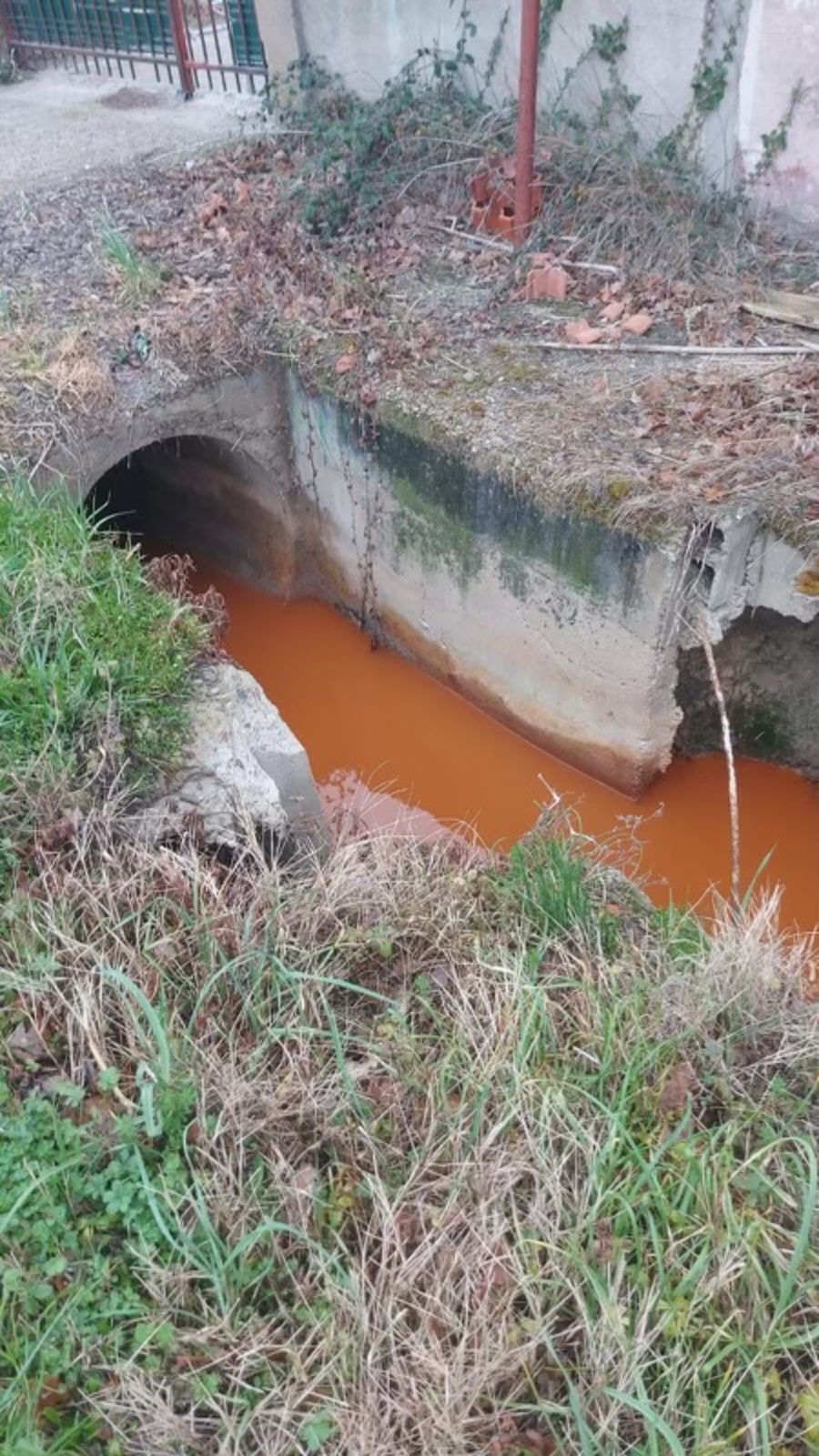 L'entreprise de nettoyage des wagons a rejeté les eaux de rinçage directement dans les fossés attenants (février 2024). Les eaux rejetées sont de couleur oranges.