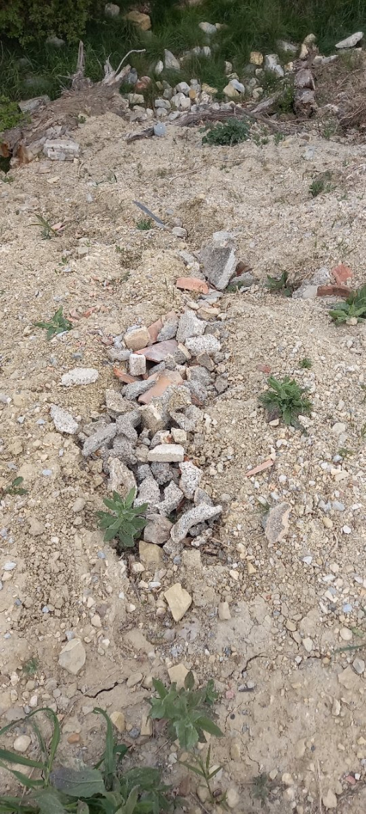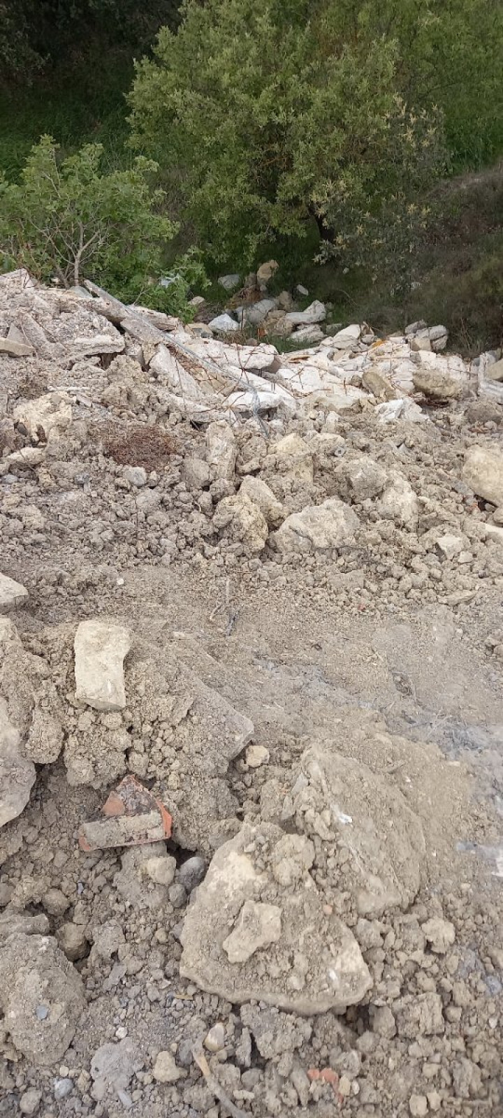 Dépôt sauvage de gravas contenant du plastique et de matériaux de construction.