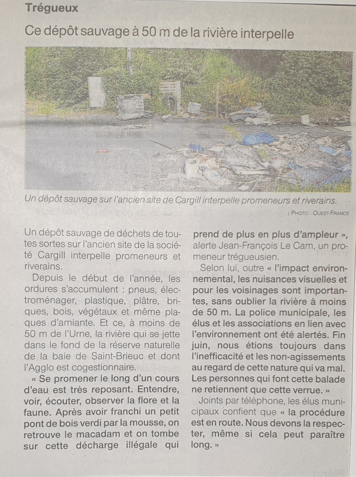 La situation ne semble pas avoir évolué avec la présence de dépôts de déchets et les divers risques de dispersion, pollution jusqu'au cours d'eau.