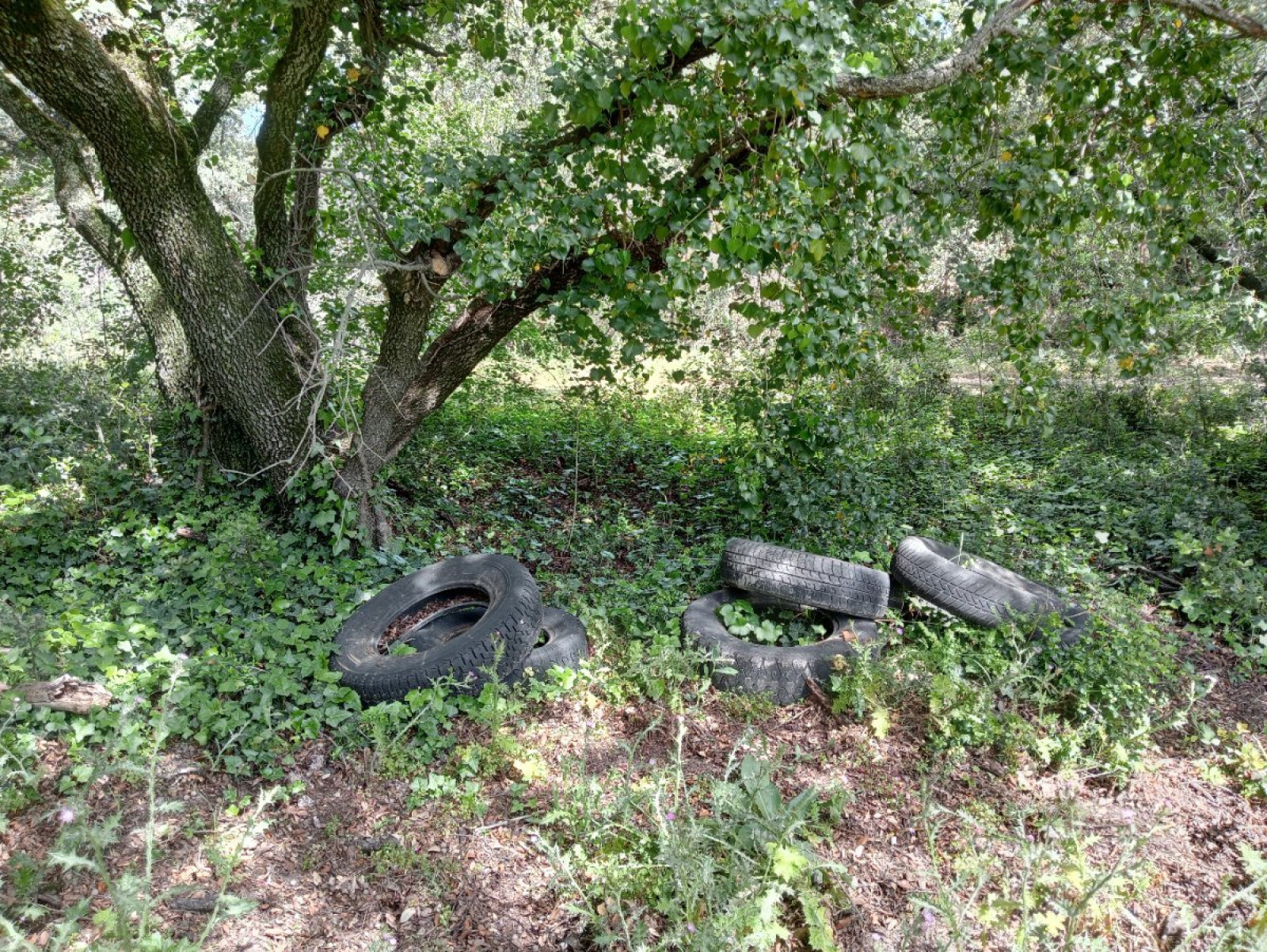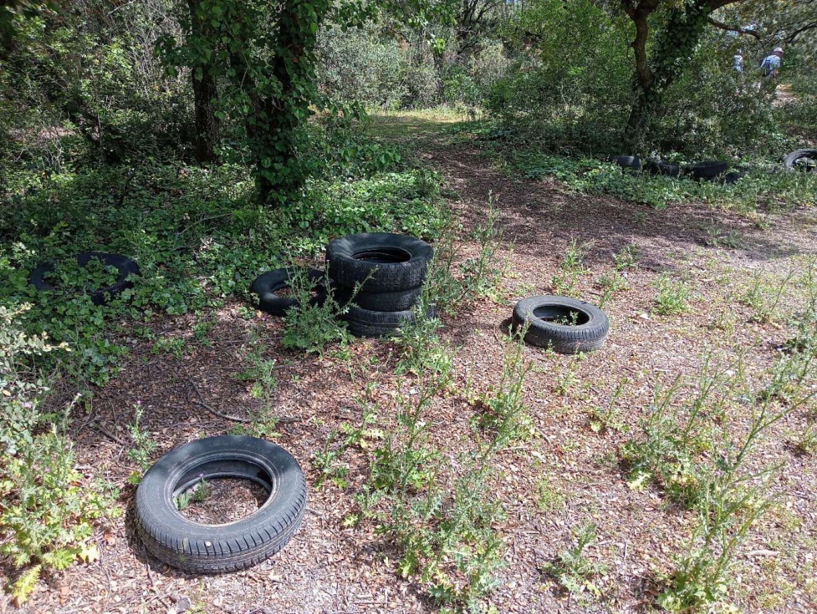 Dépôt de pneus dans la colline de Thouzon au Thor (35 pneus dans une zone boisée).