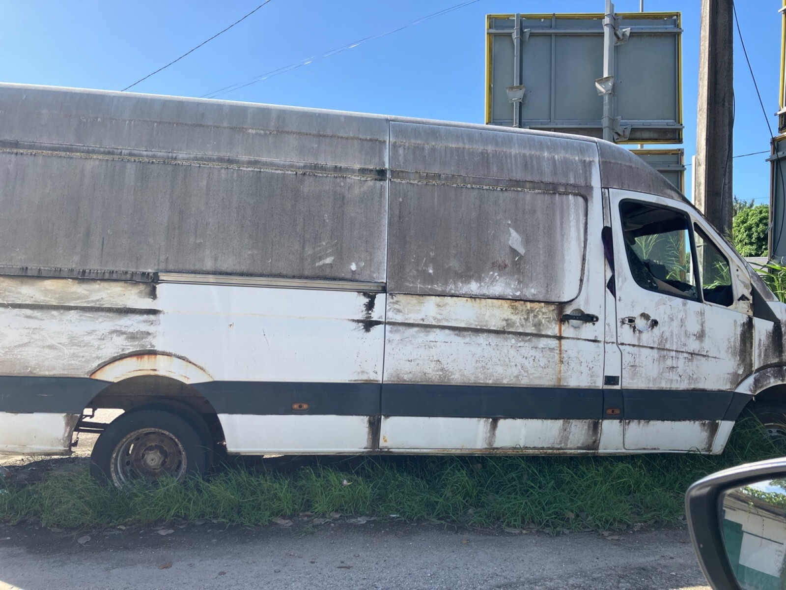 Un véhicule hors d'usage (camionnette) a été signalé sur la parking d'un supermarché, au croisement de la rue du Mayouri et de la route de Rémire.
