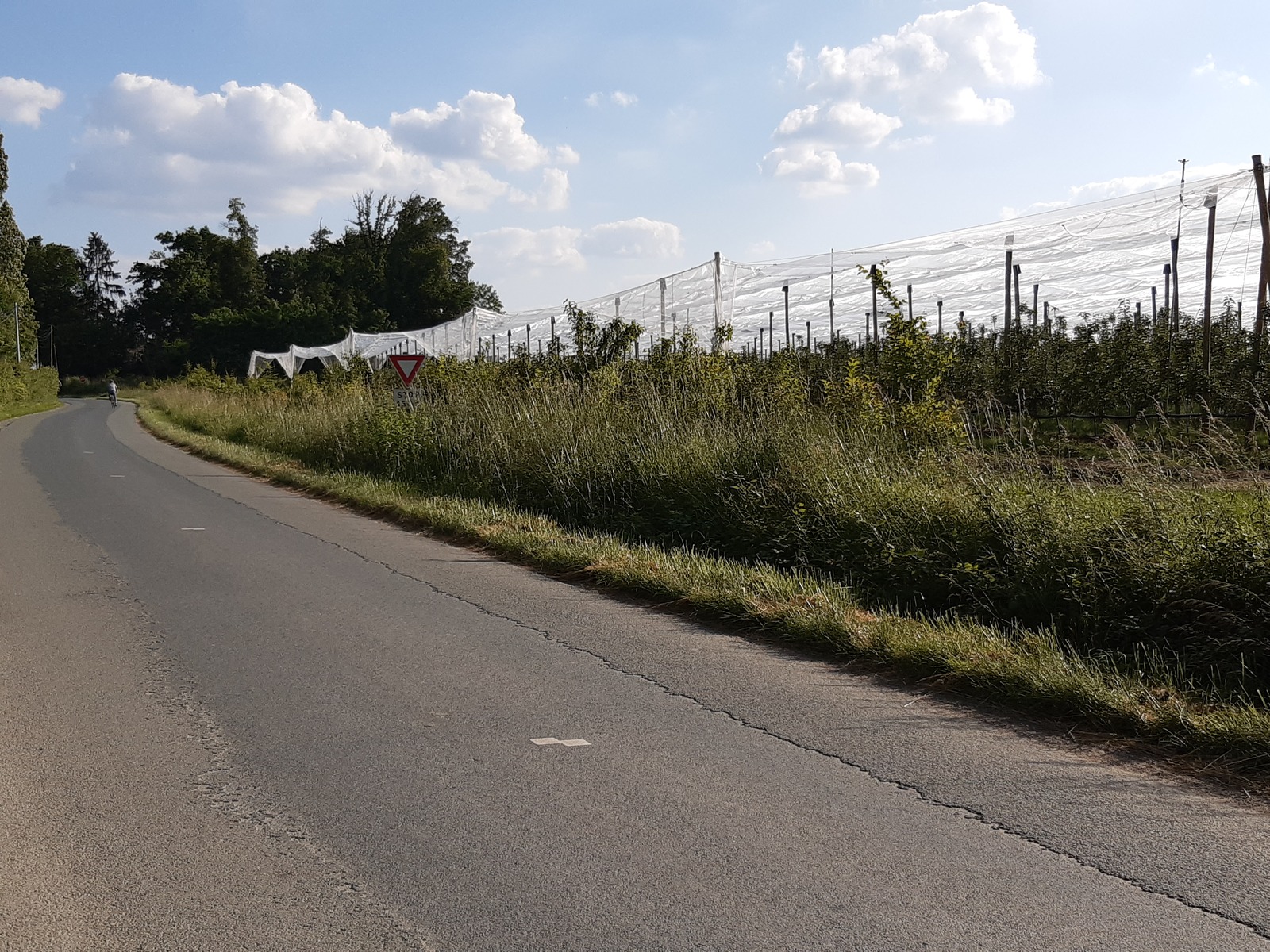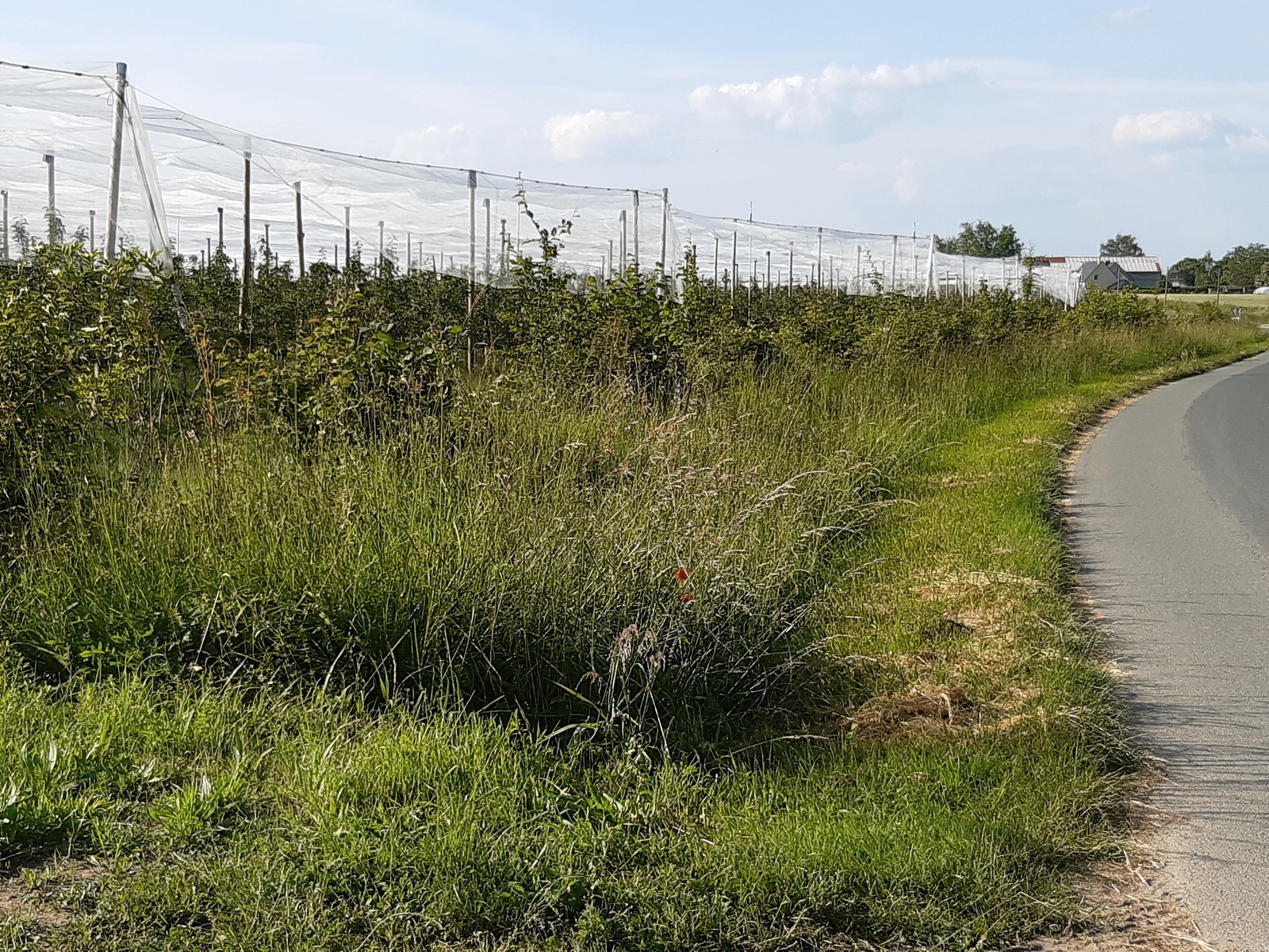 Plantation d'une haie bocagère d'environ 130 m de longueur le long d'un verger de pommier. Haie composée de d'espèces variées