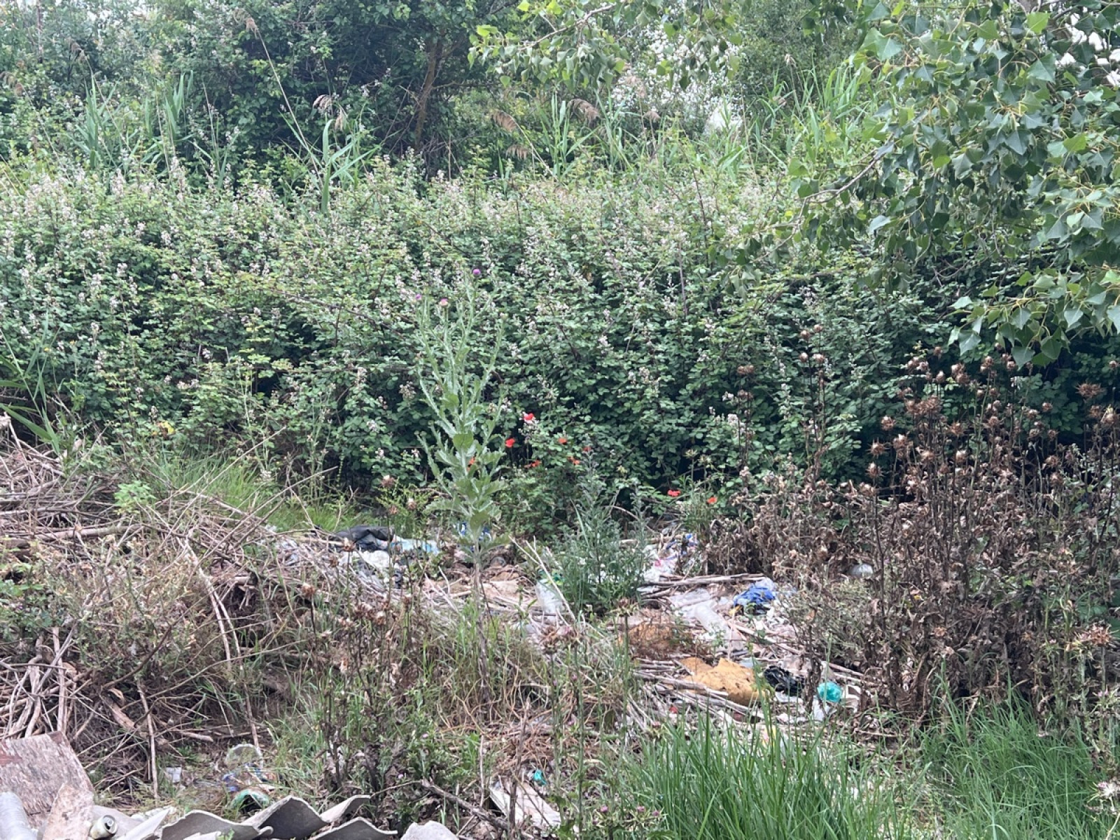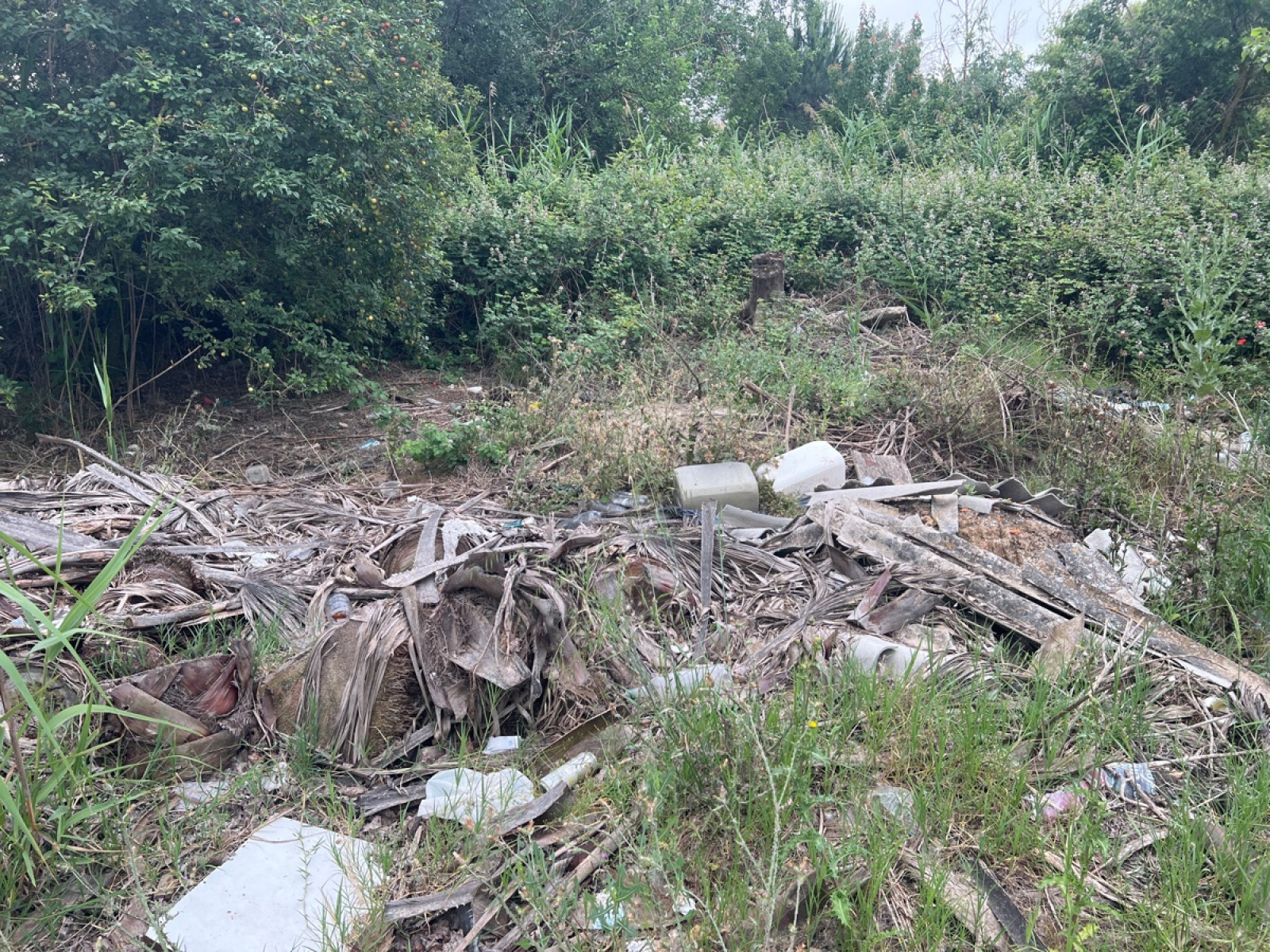 Dépôt sauvage de déchet en zone naturelle.