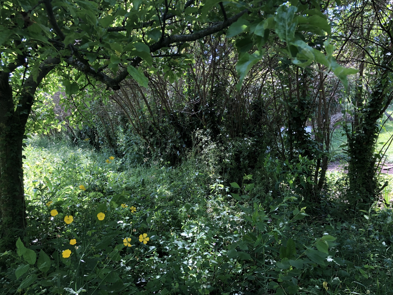 Cette haie de plus de 100 m qui longe un cours d'eau n'obtient pas un très bon score (17.5), pourtant elle lui offre de l'ombre essentielle à la survie de sa biodiversité.