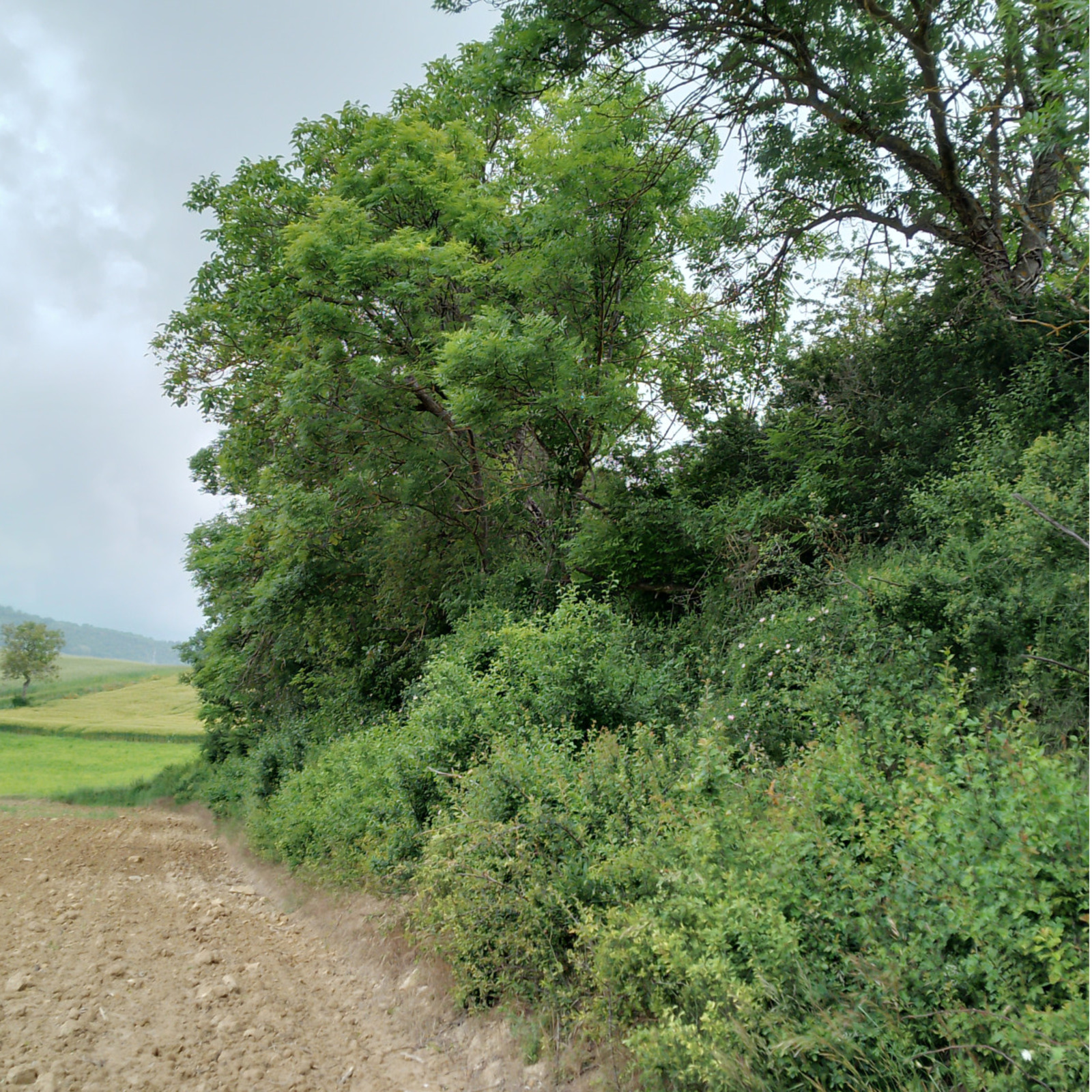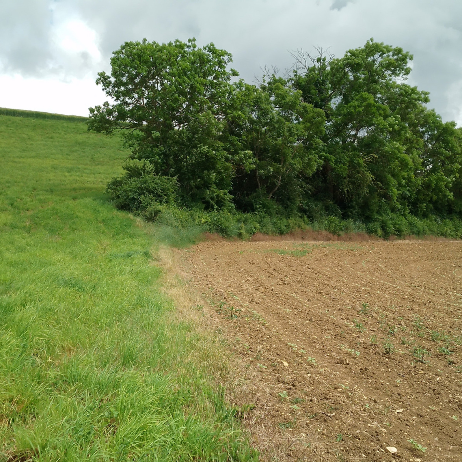 Haie marquant un talus abrupt, élargie par endroit, riche en espèces - traces de gibier (Chevreuils)