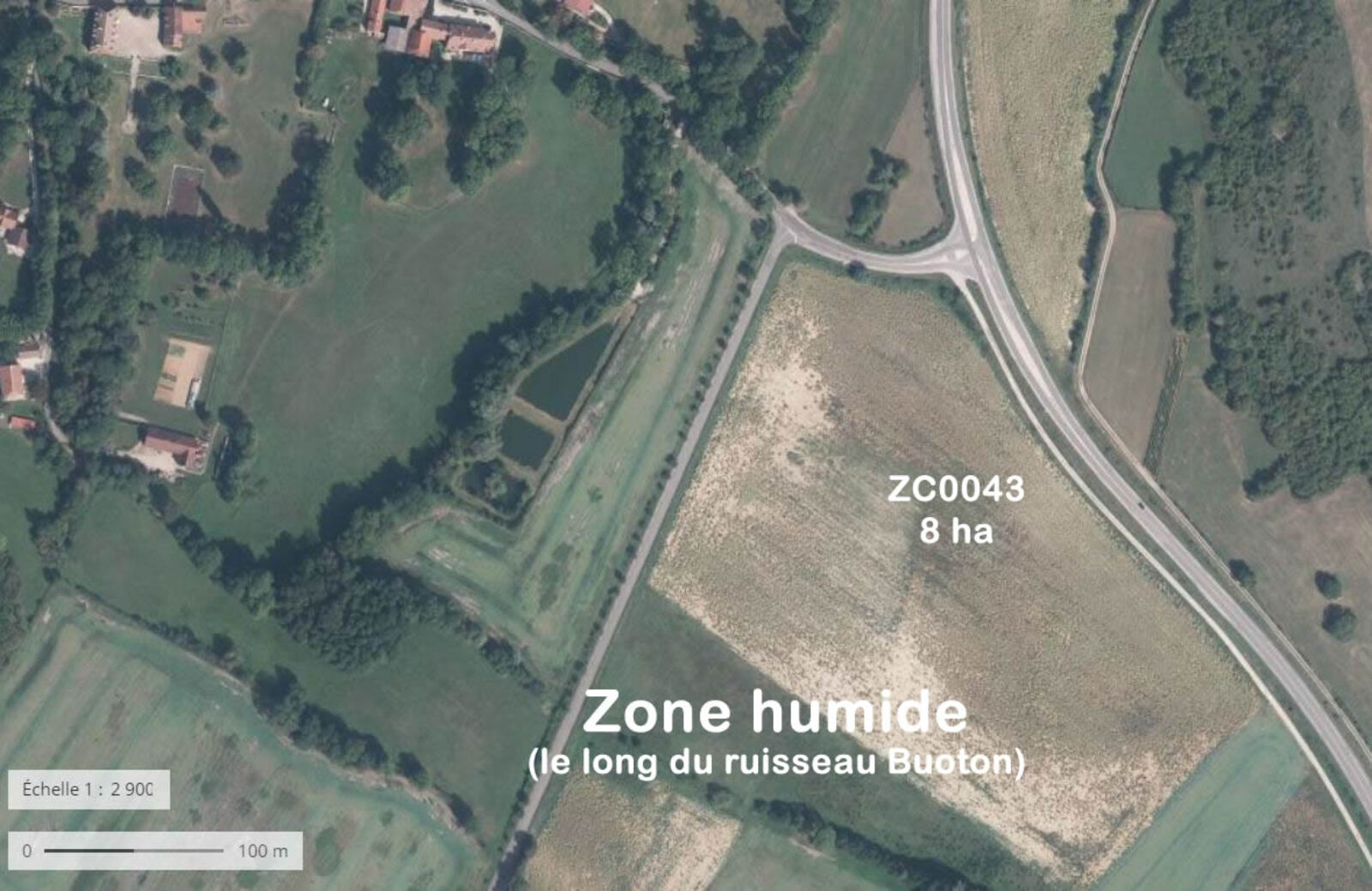 La parcelle concernée est bordée par la source du ruisseau Buoton et une zone humide.