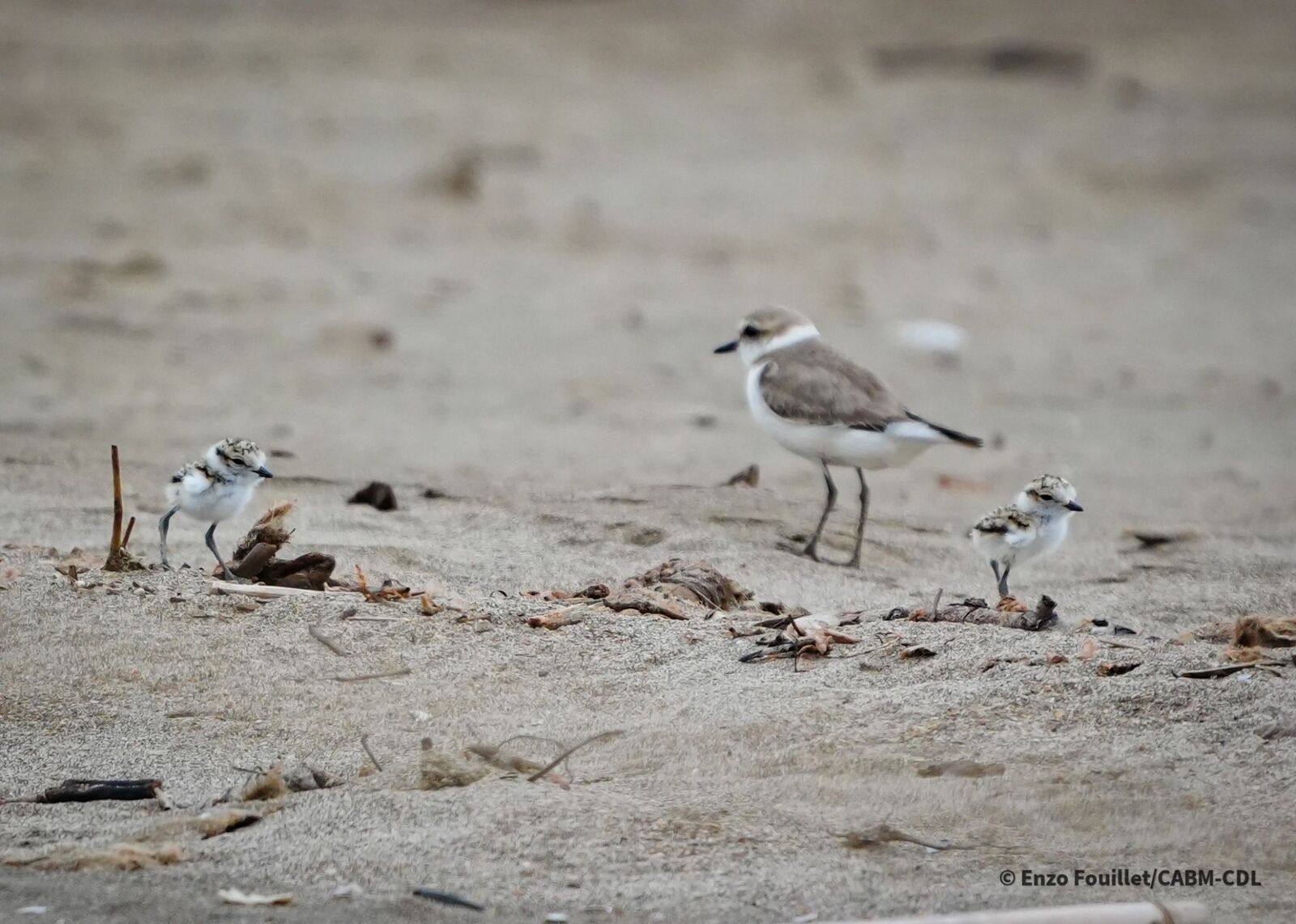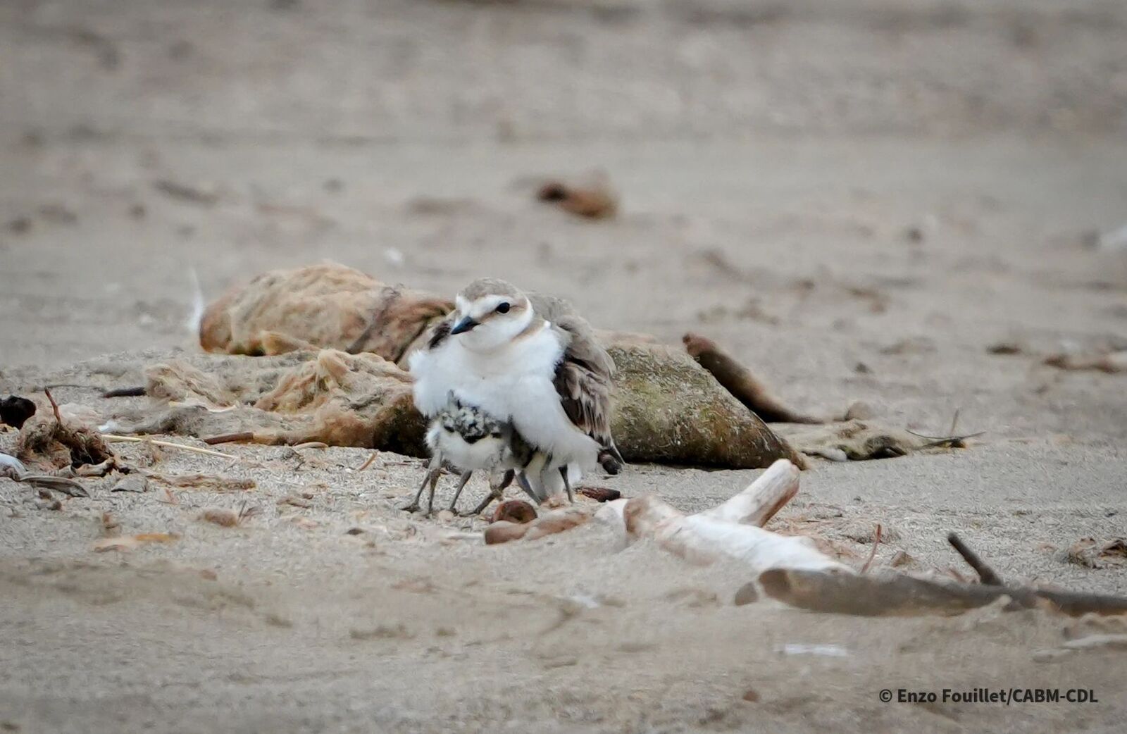 La mise en place, par le conservatoire du littoral, de plusieurs dispositifs de protection des nids sur la plage naturelle des Orpellières (mise en défend, sensibilisation...) a permis à un certain nombre de nichées de se dérouler à l'abri des intrusions humaines. Plusieurs poussins de Gravelots à collier interrompu ont ainsi pu être observés, à distance éloignée pour ne pas les perturber !
