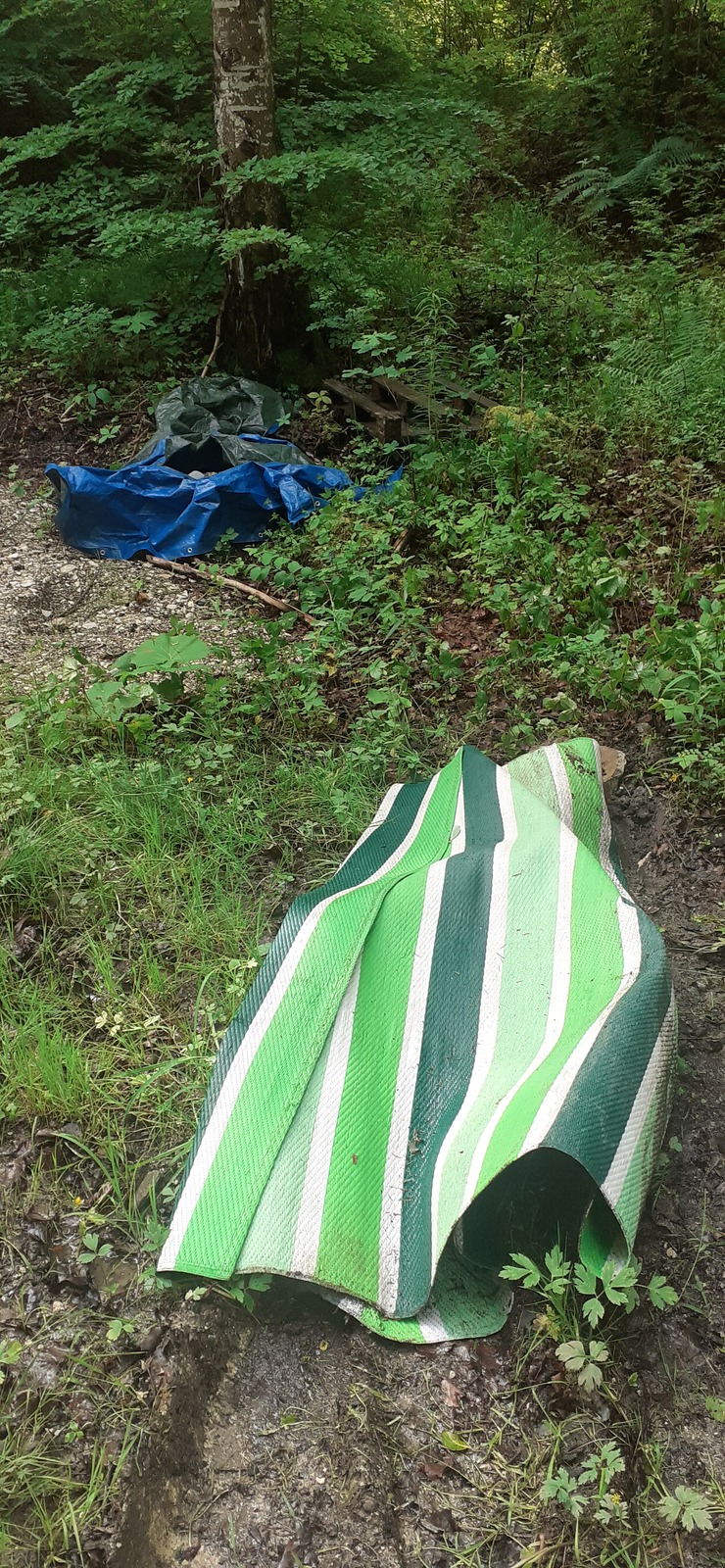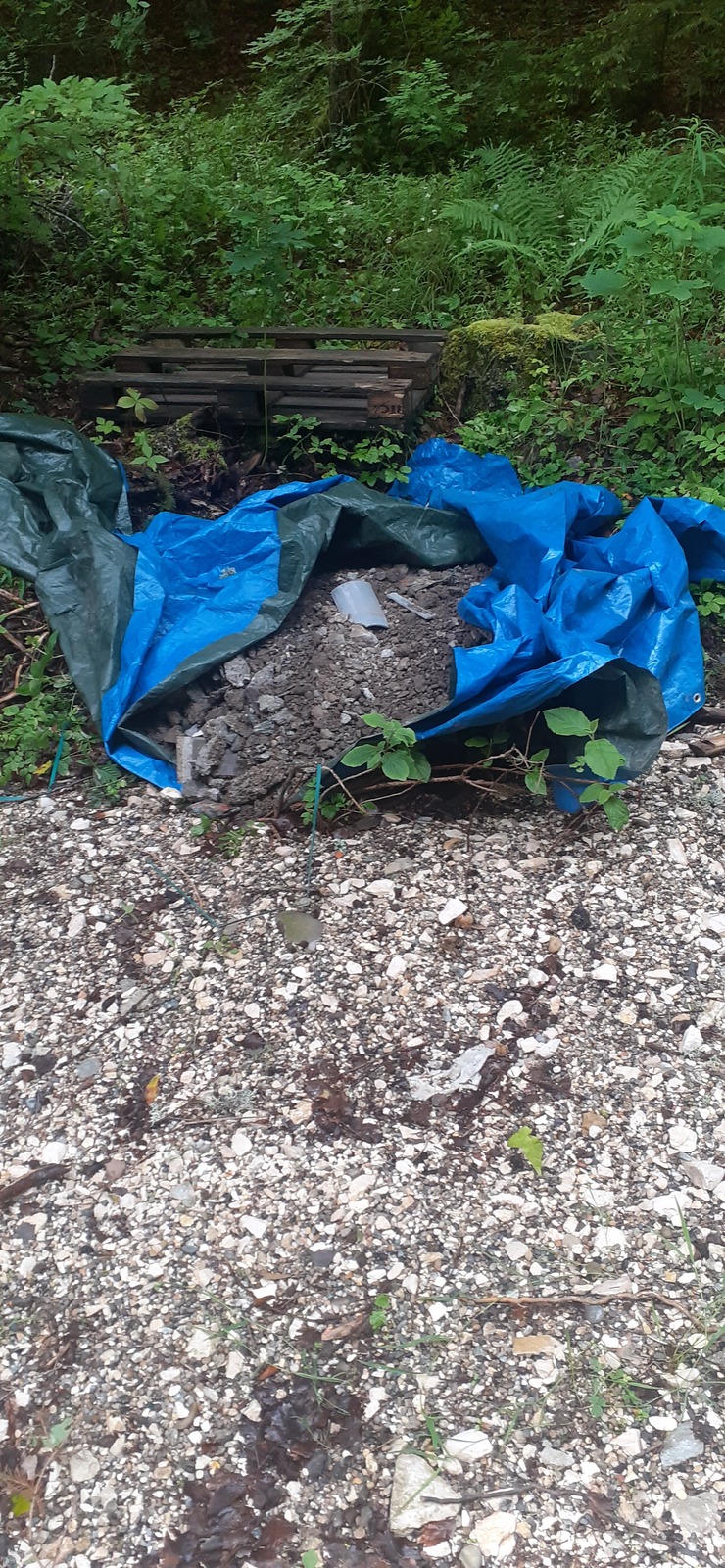 Dépôt de déchets en pleine nature sur la route des Arcelles , prêt du réservoir ( bâches et gravats)