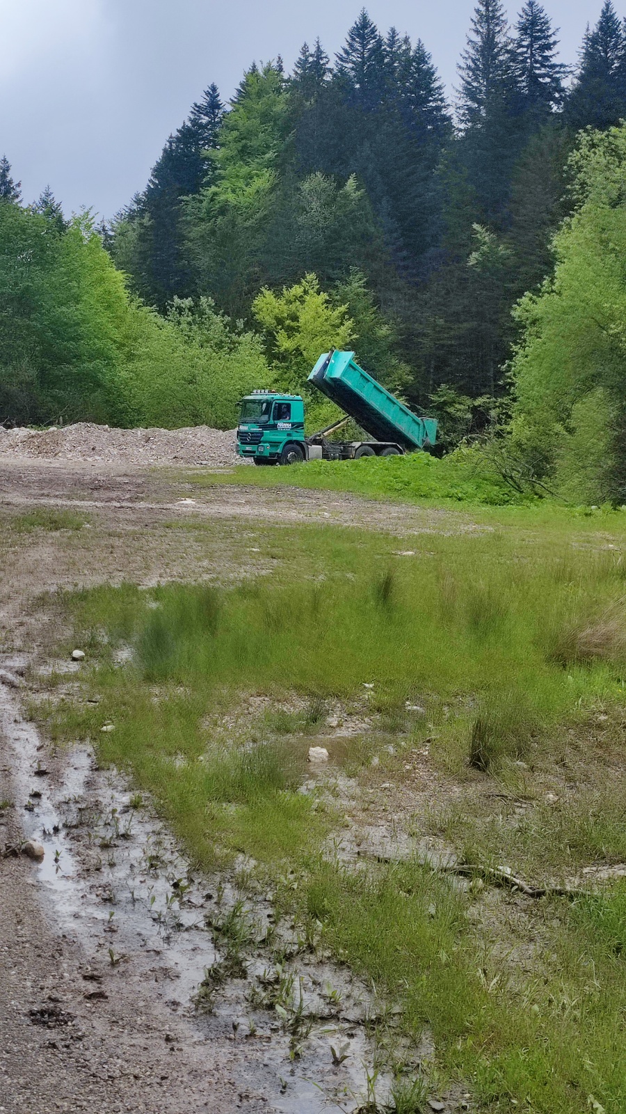 Le dépôt se fait soit directement dans le ruisseau, soit juste au bord, puis poussé avec un tracteur et ensevelis de gravas disponible juste à côté.