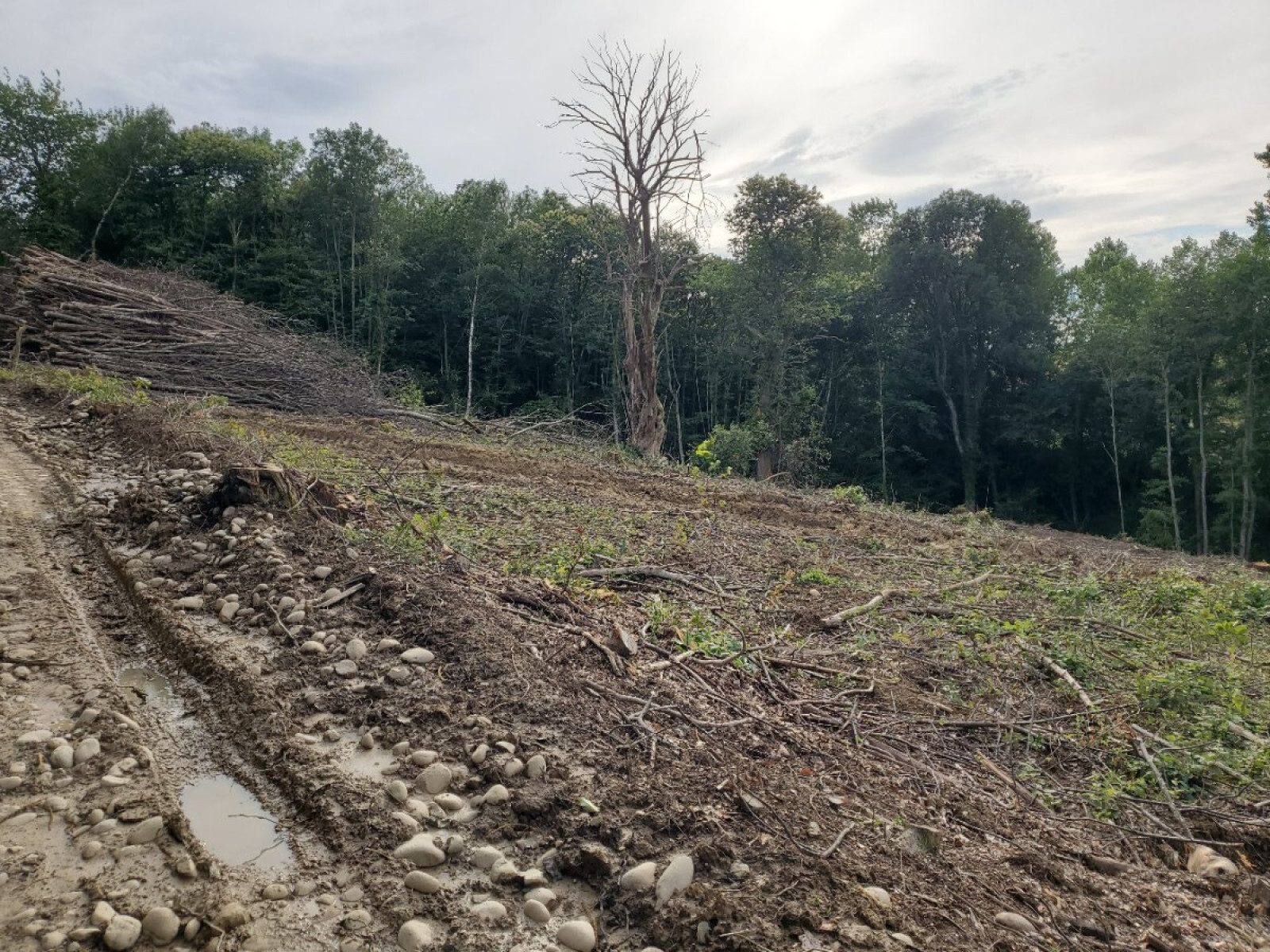 Réalisation de travaux de coupe rase. Il semblerait que certaines des parcelles affectées par les travaux soient les parcelles AE0401, AE0402, AE0423.