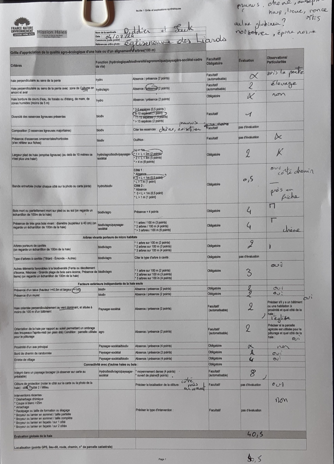 Très longue haie à protéger absolument : note 40,5 pts sur la grille agroécologique