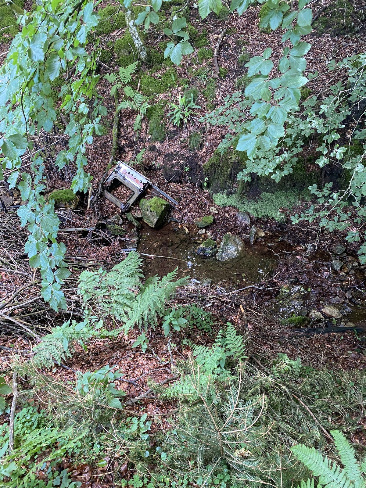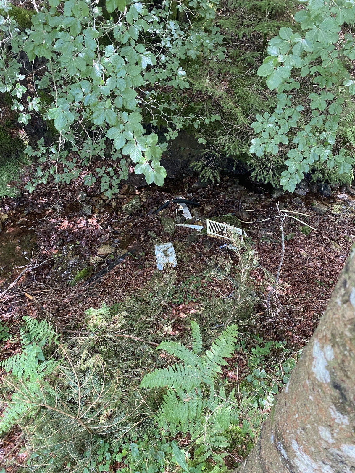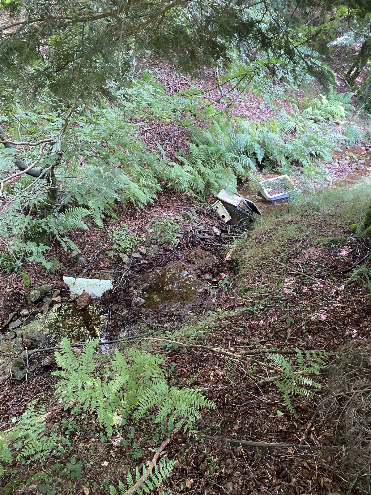 Dépôt sauvage de déchets en zone alluviale dans un ruisseau (encombrants Carcasse de cuisinière, de chauffe eau, égouttoir en plastique, tubes et déchets divers )