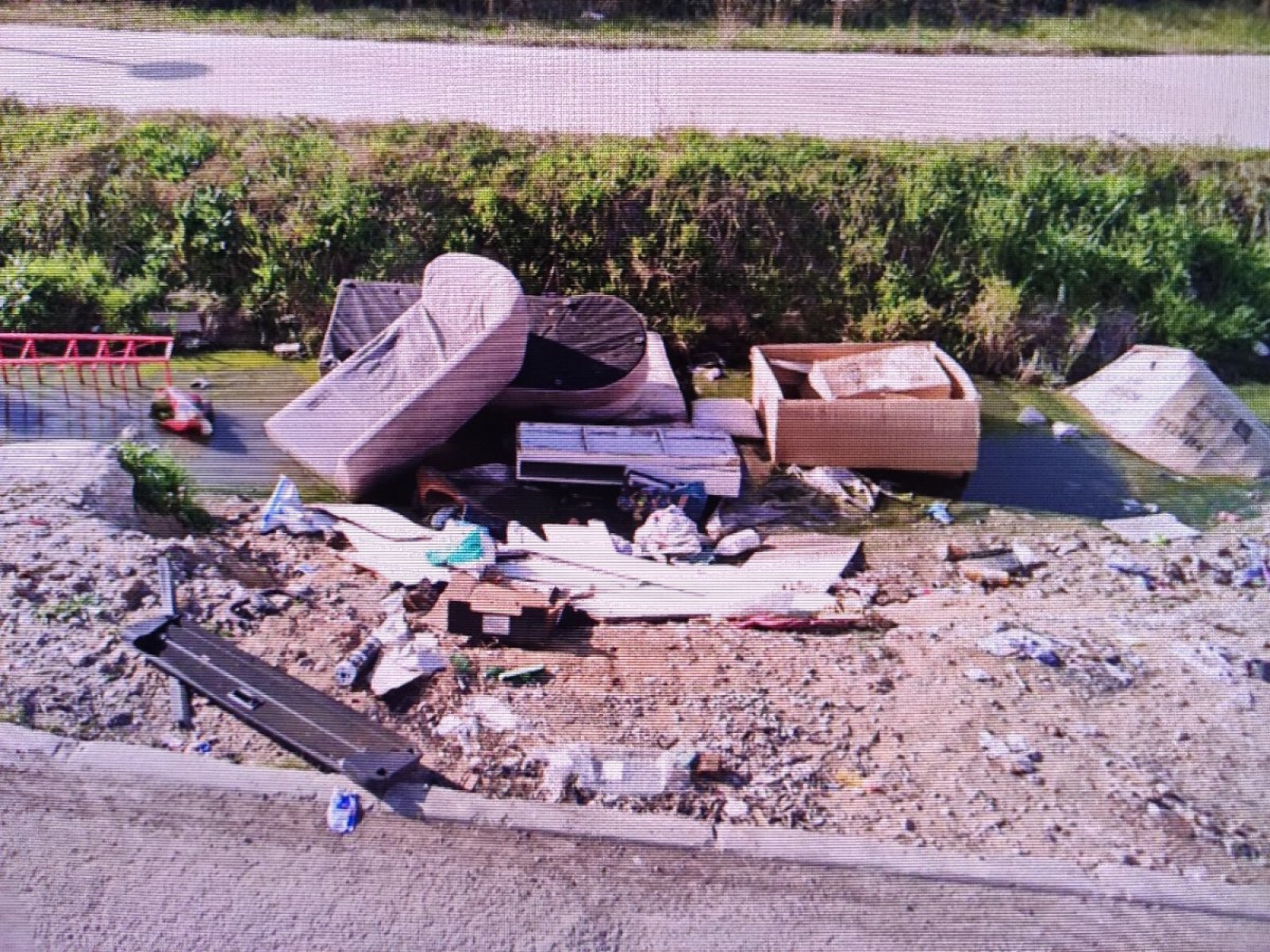 Dépôt sauvage de déchets en zone urbanisée. ( encombrant, déchets plastiques pneus, matelas planche de bois, cartons et autres).