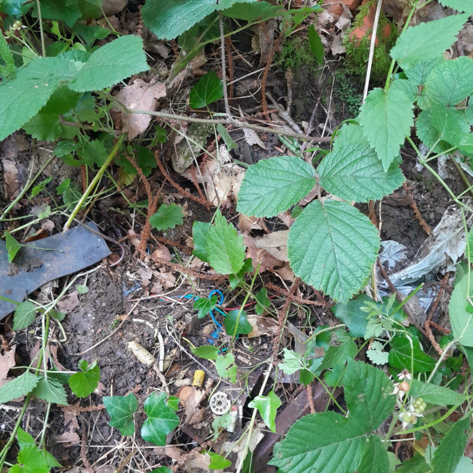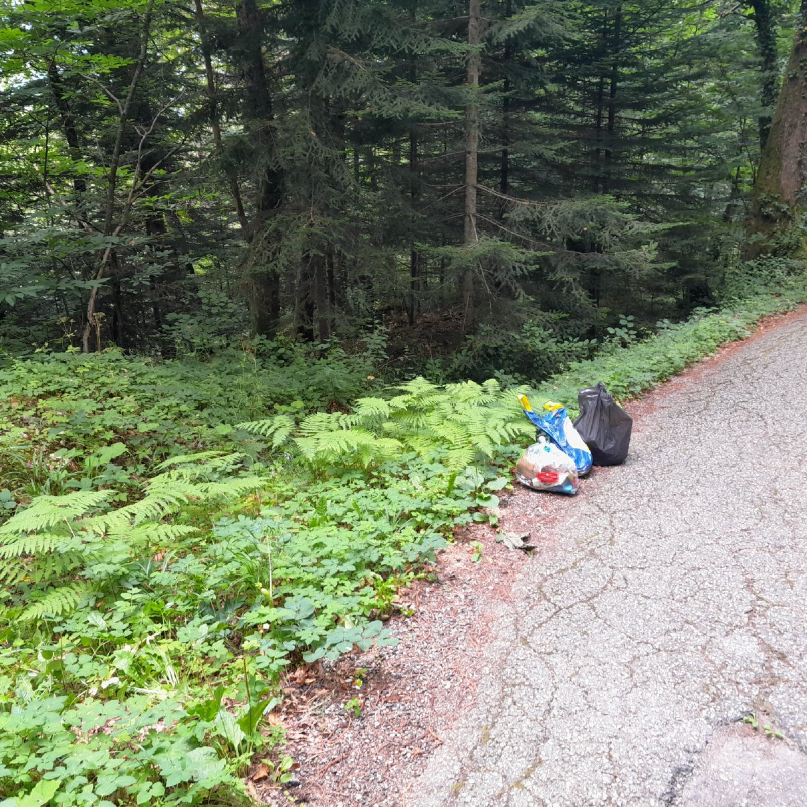 Divers déchets dans un virage en bord de route en allant vers le hameau du terreau