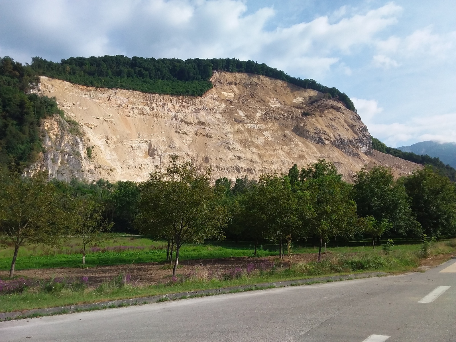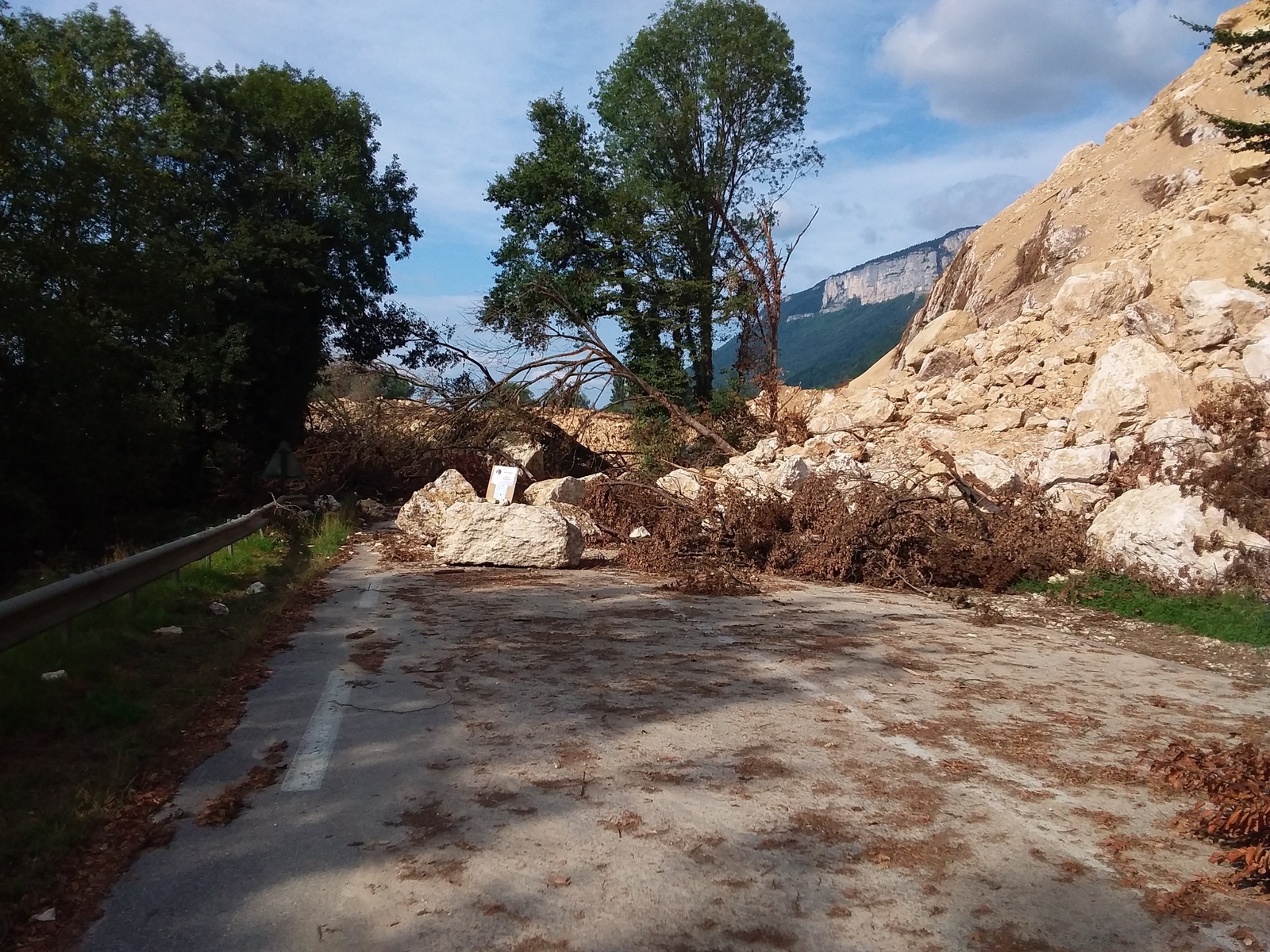 Le 25/07/2024, à La Rivière (38), une partie de la montagne, sur laquelle est exploitée une carrière, s’est effondrée. Plusieurs milliers de tonnes de terre et de roches ont été emportés sur le versant jusqu’au fond de la vallée ; rendant impraticable la départementale 1532 qui relie Grenoble et Valence.