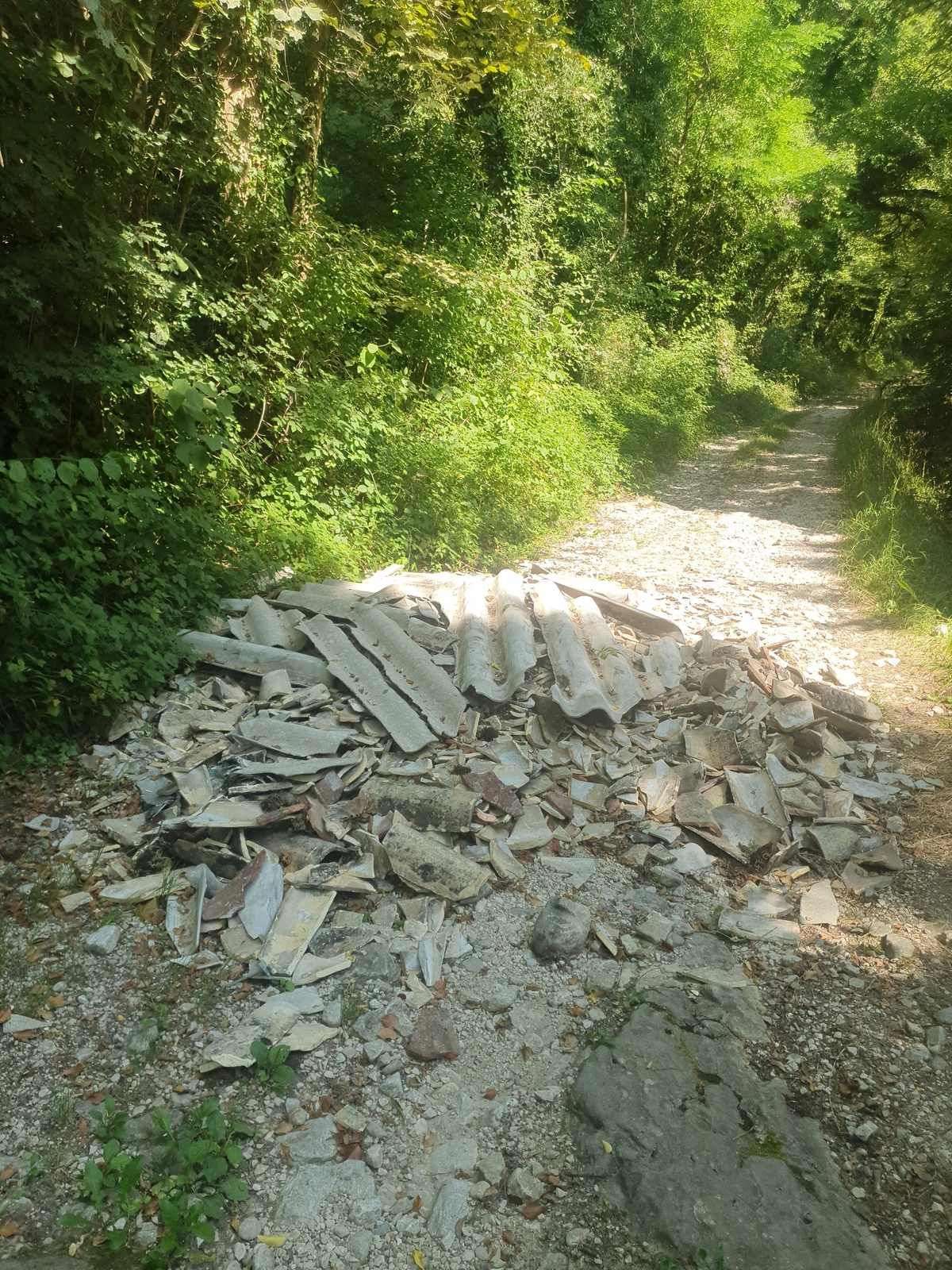 Déchets du bâtiment avec des éléments de toitures sans doute amiantés
