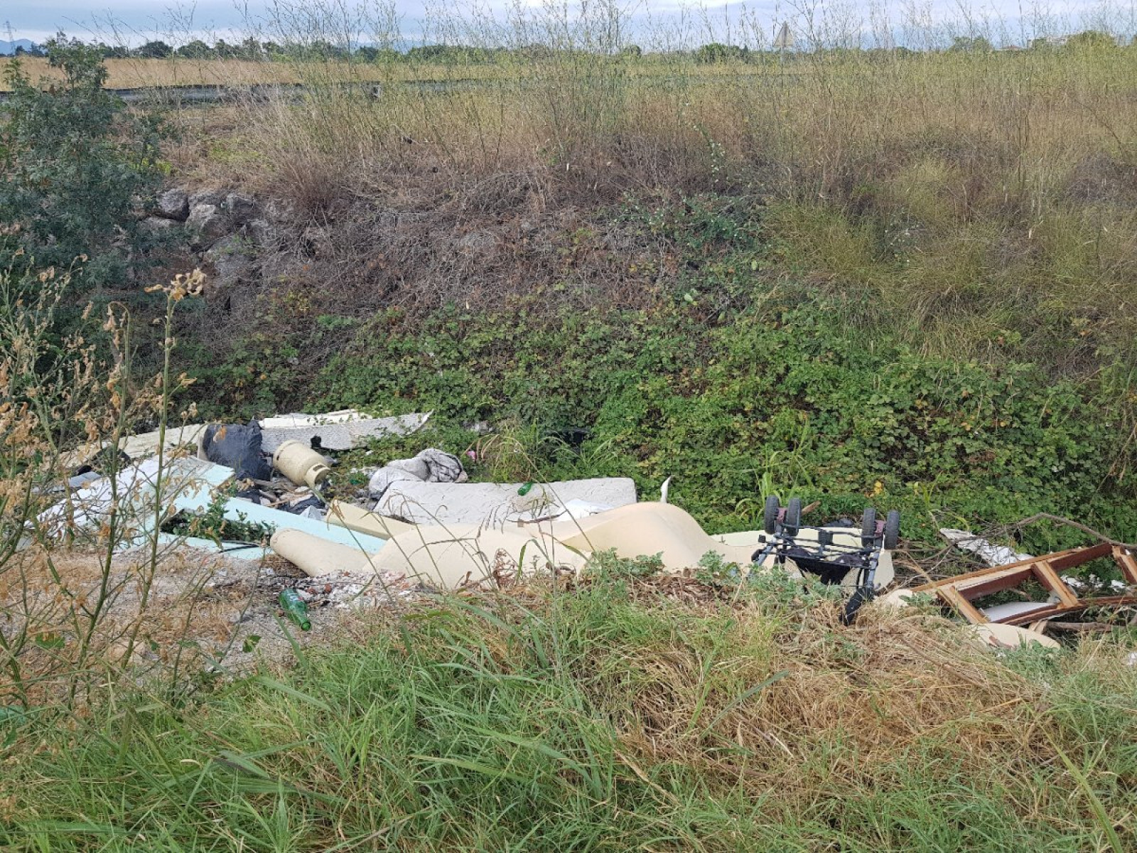 Dépôt sauvage de déchets à proximité d'une aire d'accueil et dans un cours d'eau.