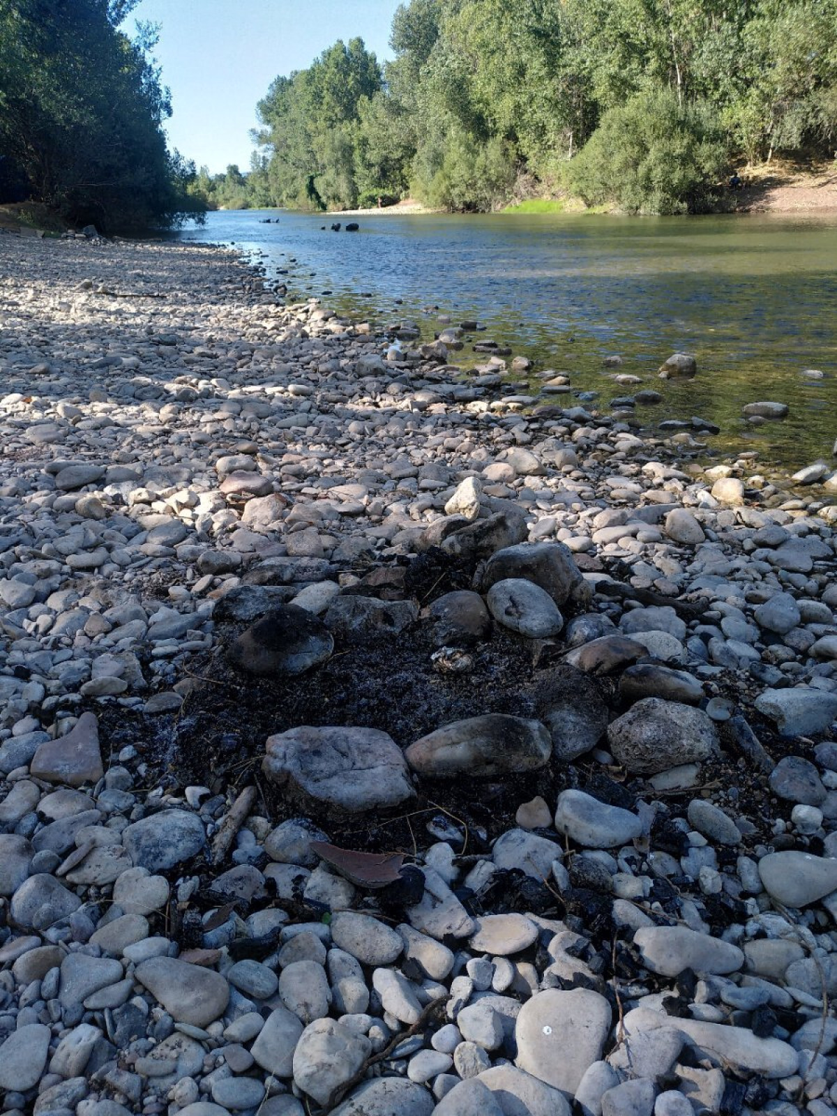 Nombreuses marques de feu sur la plage. Bien que l'on soit situés près d'un cours d'eau, cette plage est en pleine zone naturelle et l'allumage de feux présente toujours un risque d'incendie, notamment en pleine période estivale.