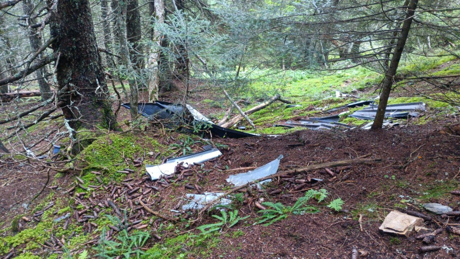Au moins une quinzaine de tôles de bac acier sur le sol forestier à Valpelouse, aux abords d'une ancienne piste.