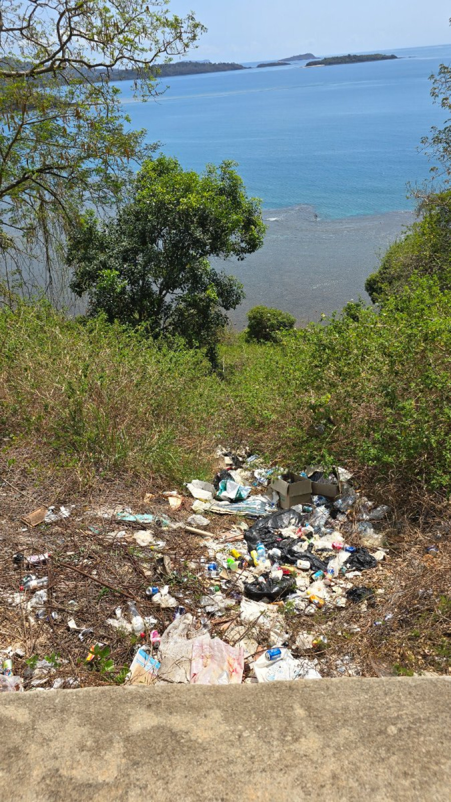 Un dépôt de déchets en bord de route a été repéré par une sentinelle. Cet amoncellement constitue en lui-même une pollution des sols environnants, des risques pour la santé des riverains et notamment, son emplacement favorise le ruissellement des déchets et des eaux contaminées par eux directement dans le lagon.