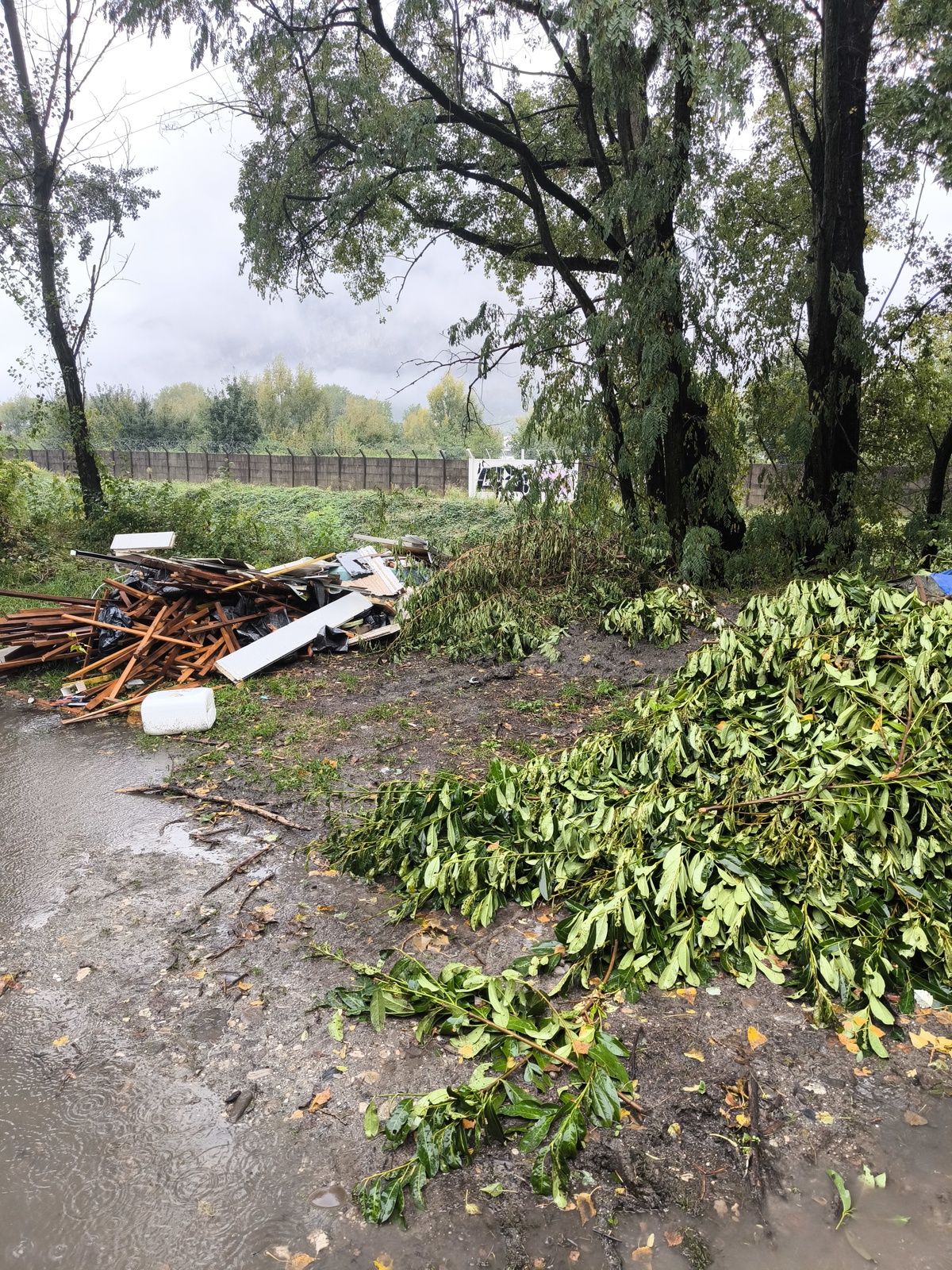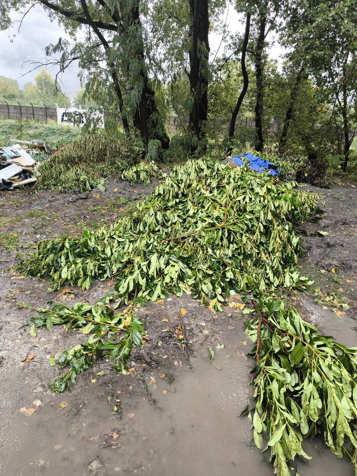 Déchets plastiques, bois, métal plus quelques bidons vides. Surface 12m2