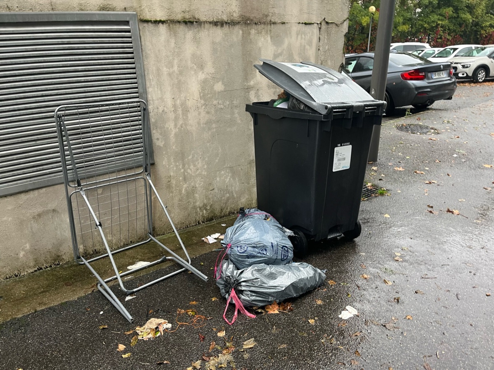 Depuis plusieurs mois, les poubelles d’une résidence située en zone urbanisée débordent très régulièrement. Les déchets, notamment les emballages légers, sont fréquemment dispersés par le vent et terminent leur course dans la rivière voisine, le Laudon.