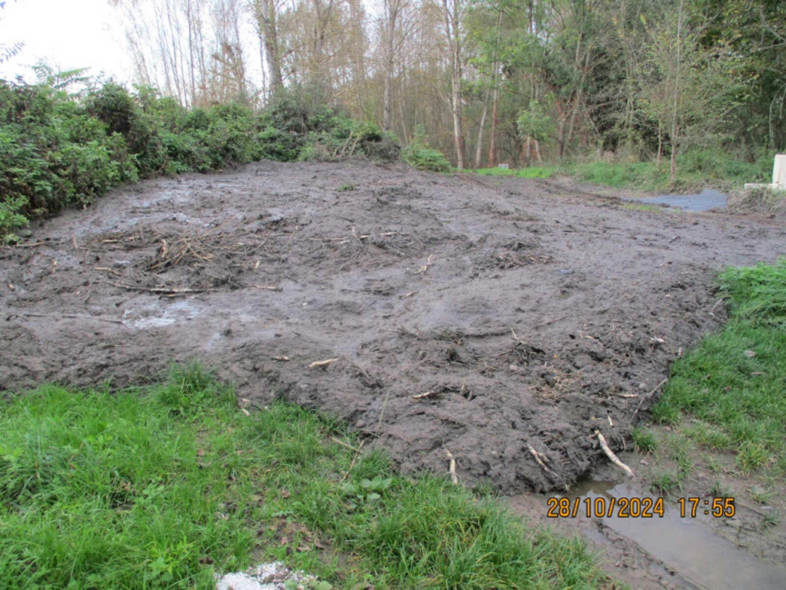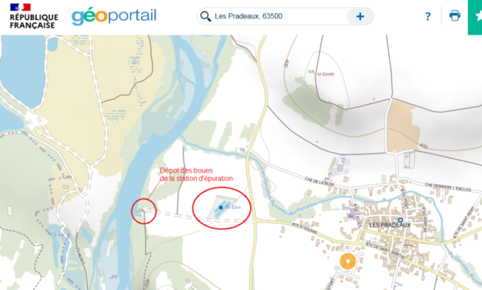 Suite à des travaux récents de reconstruction de la station d'épuration des Pradeaux, les boues du bassin initial (d'avant travaux) ainsi que celles du fossé d'évacuation ont été déposées en bordure de la rivière sur une zone interdite aux dépôts. Cette zone étant proche de la rivière et considérée comme une zone inondable, ce dépôt présente un risque non négligeable de pollution de l'eau.