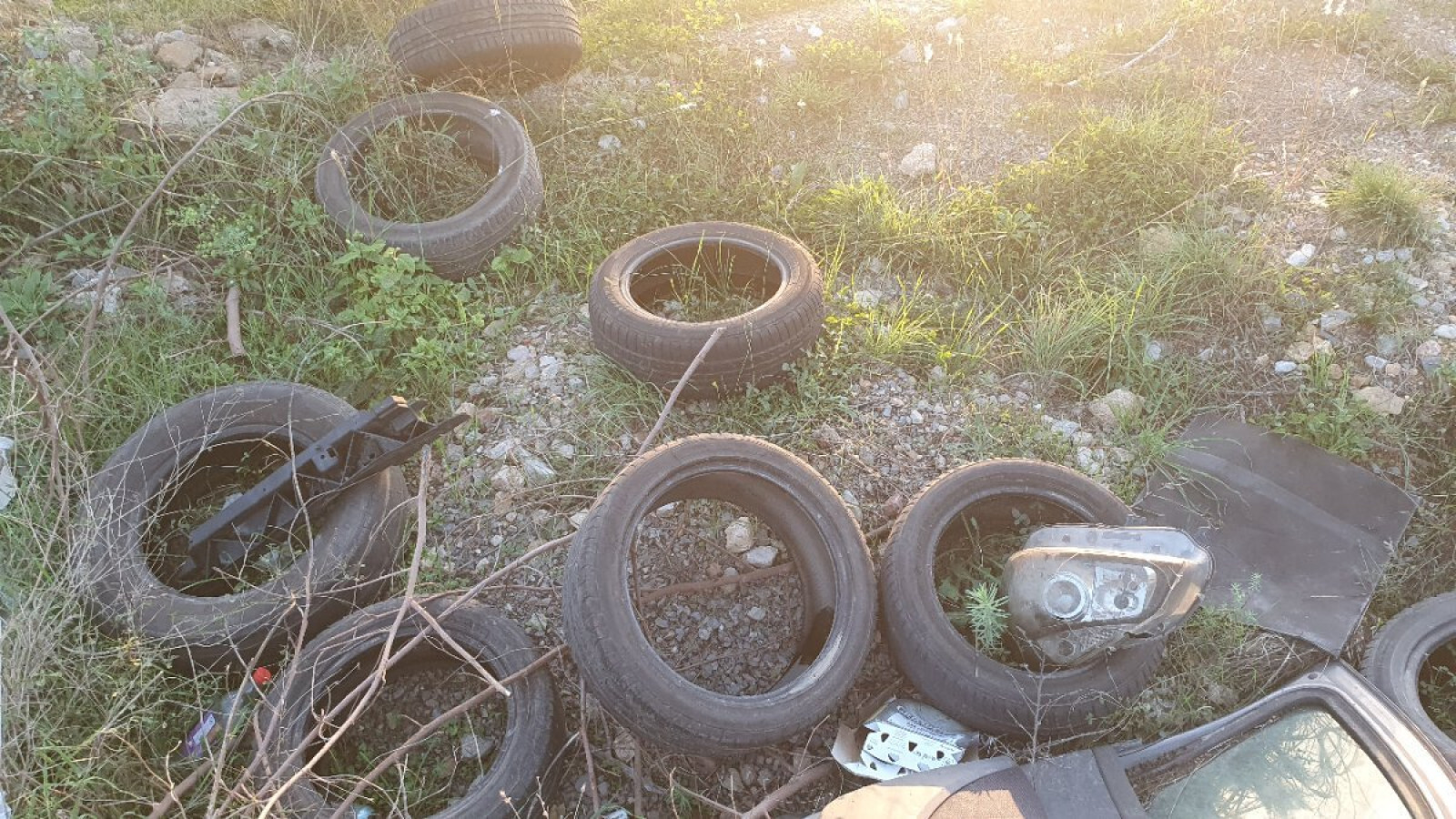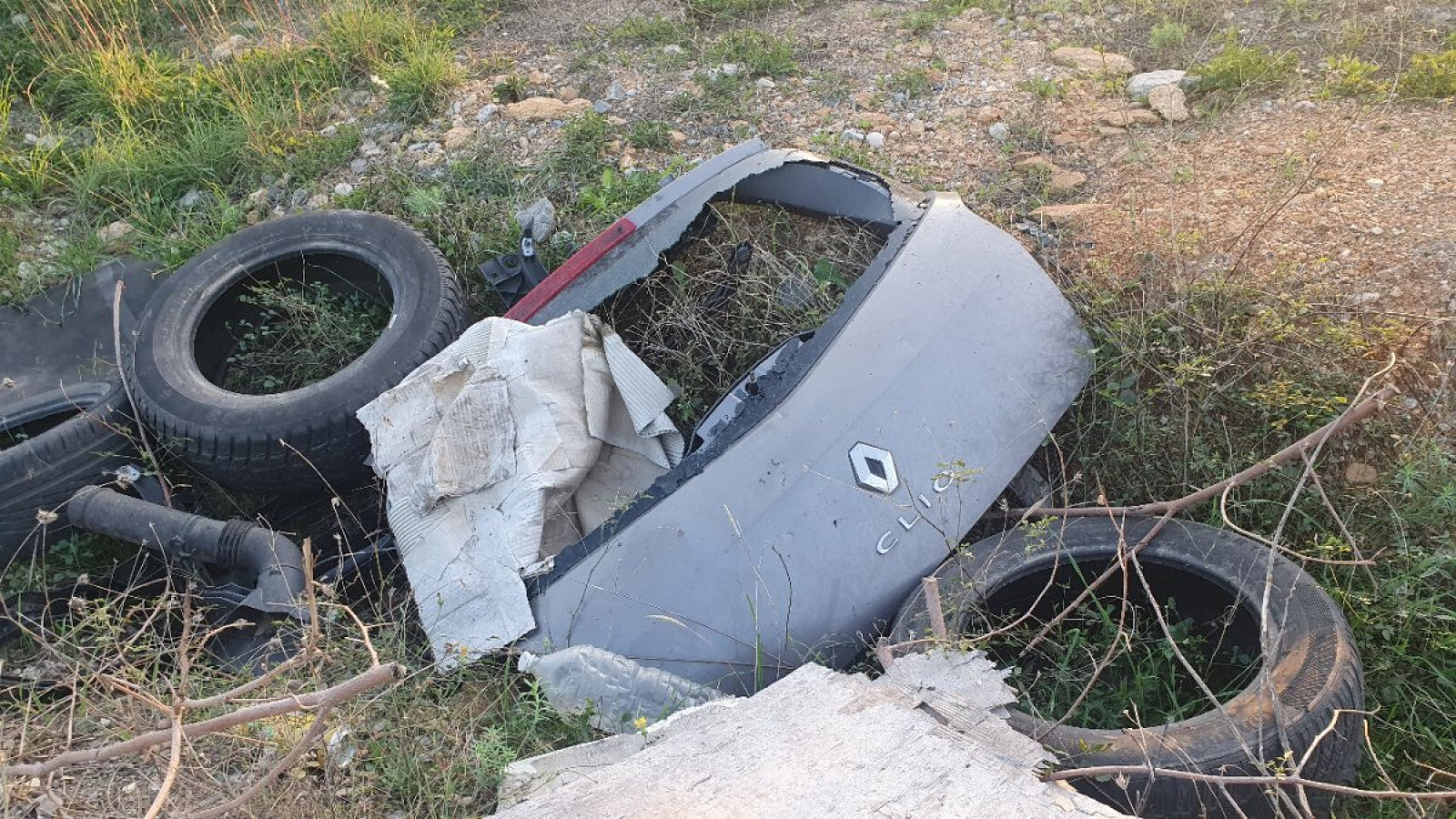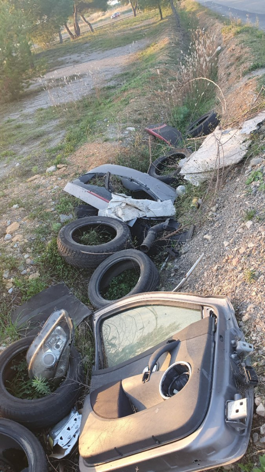 Dépôt sauvage de déchets dans un fossé le long d'une route