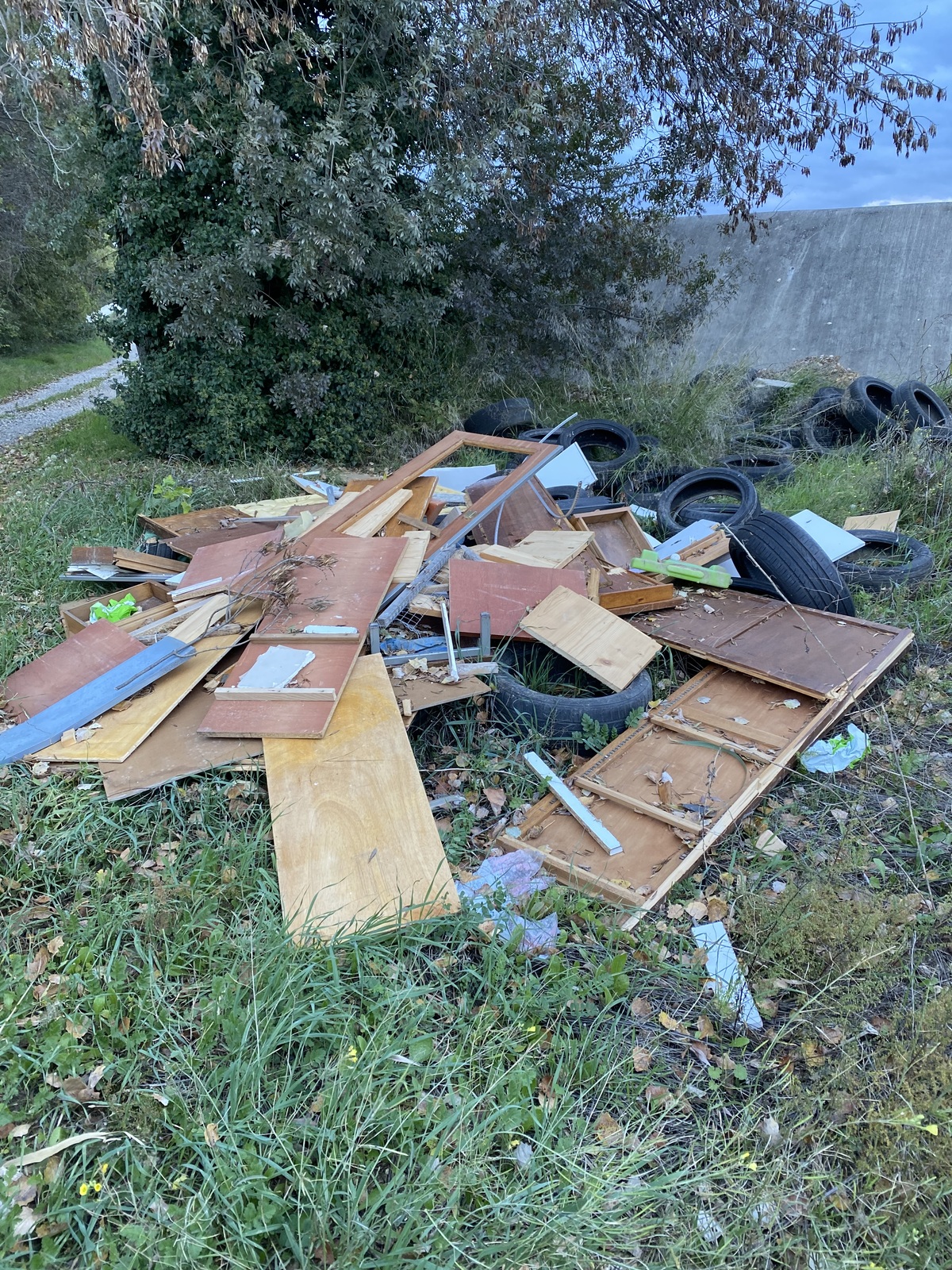 Dépôt sauvage de déchets (pneus et bois) en zone boisée