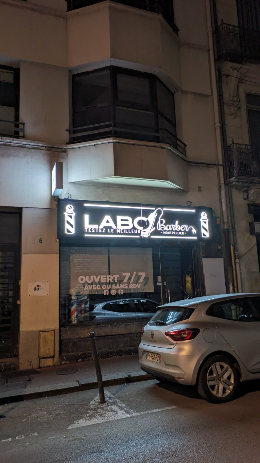 [Éclairages illégaux] : Enseigne du salon de coiffure Labo coiffure allumée à 1h52. Dans le cadre de notre Campagne SENTINELLES DE LA NUIT, nous procédons au recensement des éclairages illégaux pour sensibiliser les acteurs concernés et initier le changement.