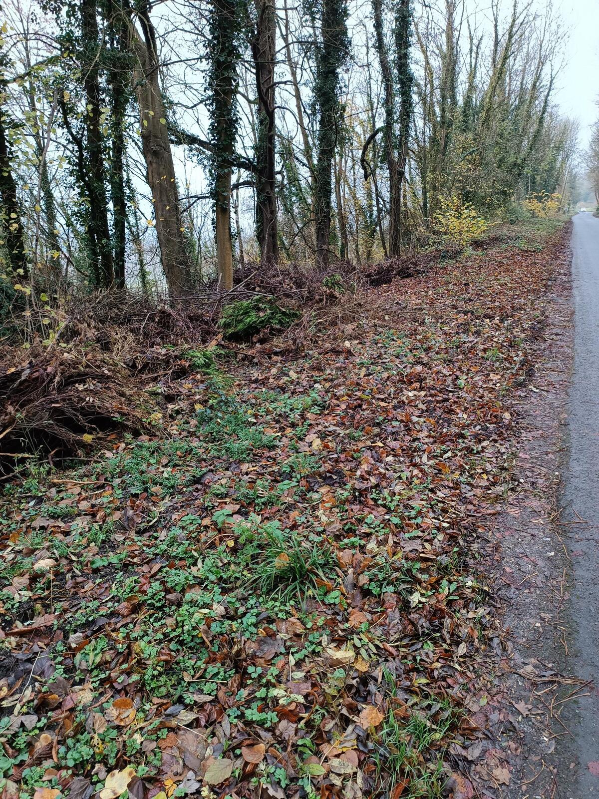 De nombreux sacs-poubelles ont été balancés en bordure de la D64 et dans le ravin adjacent. Il s'agit de déchets ménagers.
