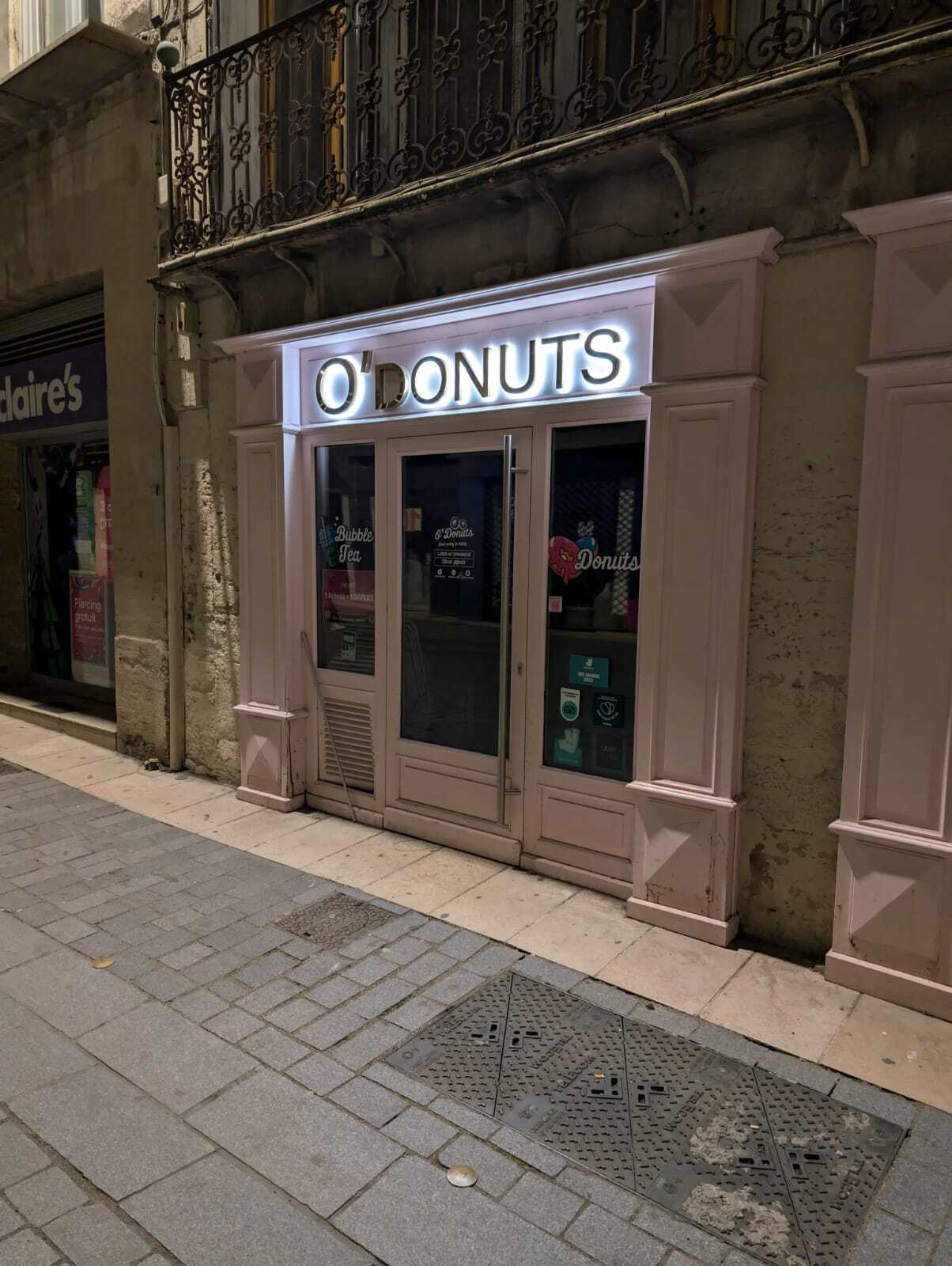 [Éclairage mis en conformité] : Enseigne de O'donuts allumée en 2024 et éteinte en 2025.