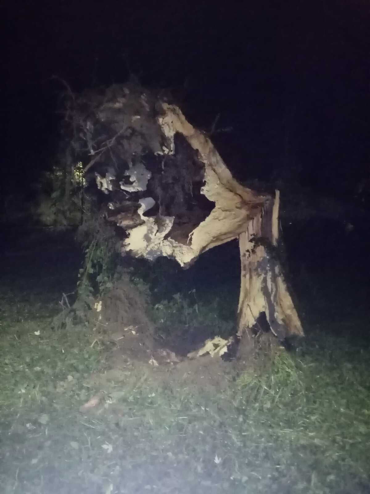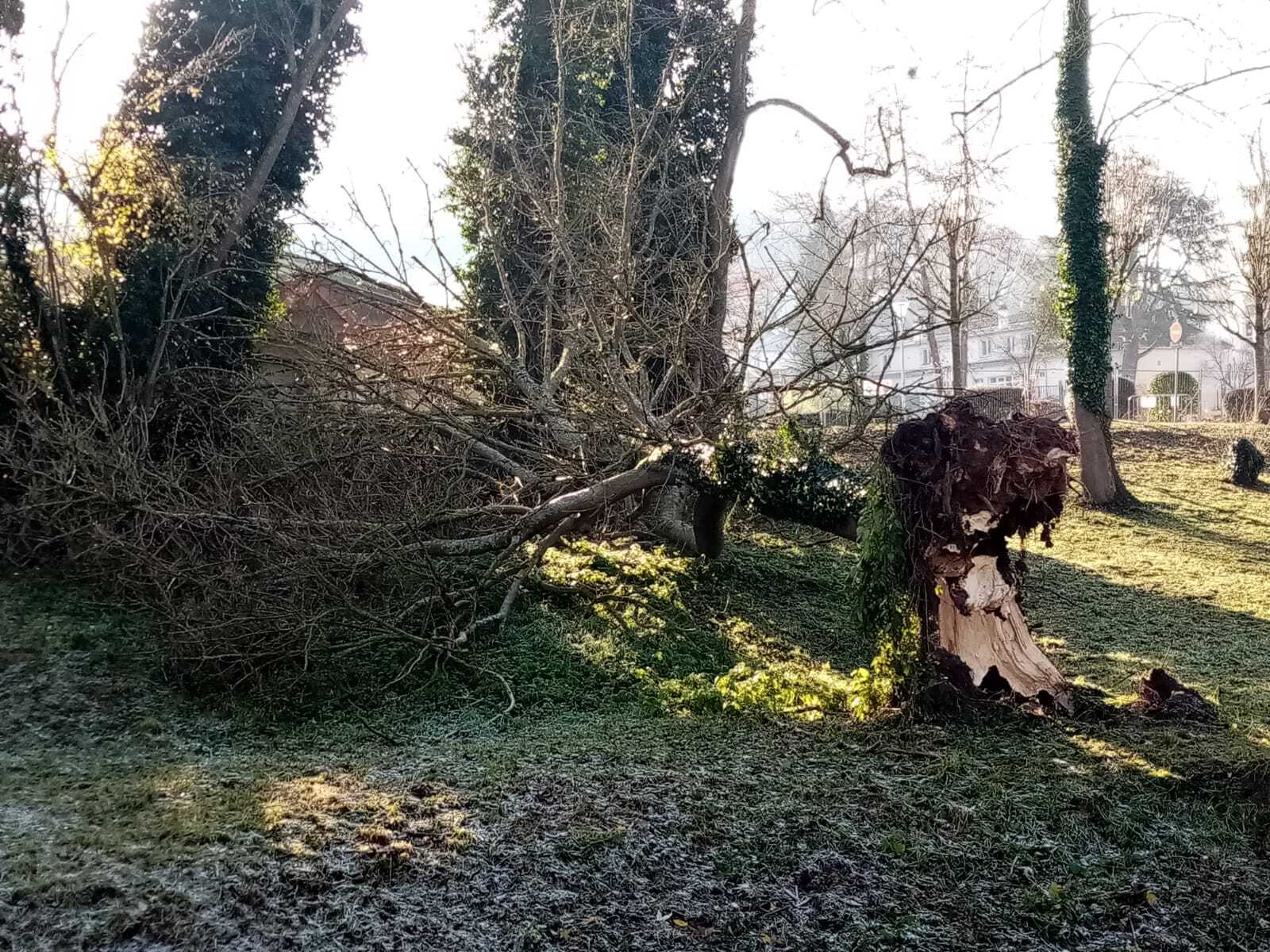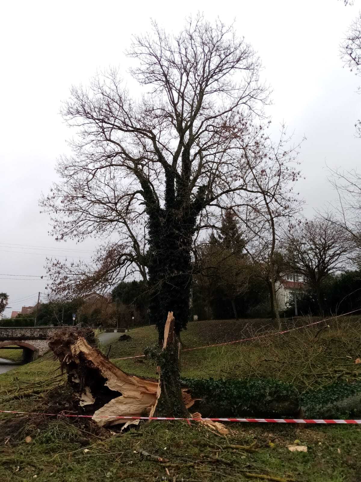 Un arbre est cassé au niveau du tronc suite à un coup de vent