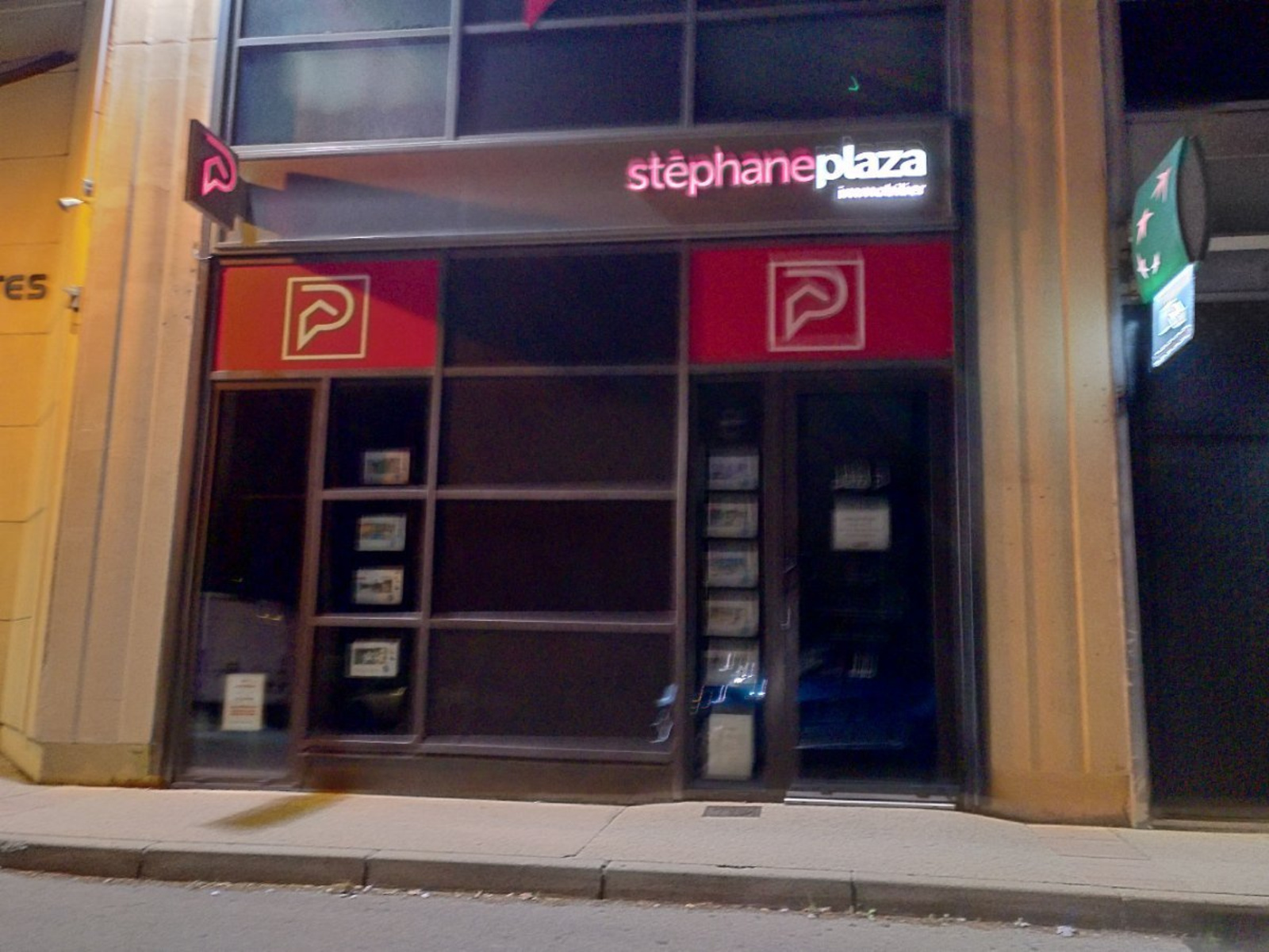 [Éclairages illégaux éteints] : Enseigne de l'agence immobilière Stéphane Plazza allumée en 2024 et éteinte en 2025.