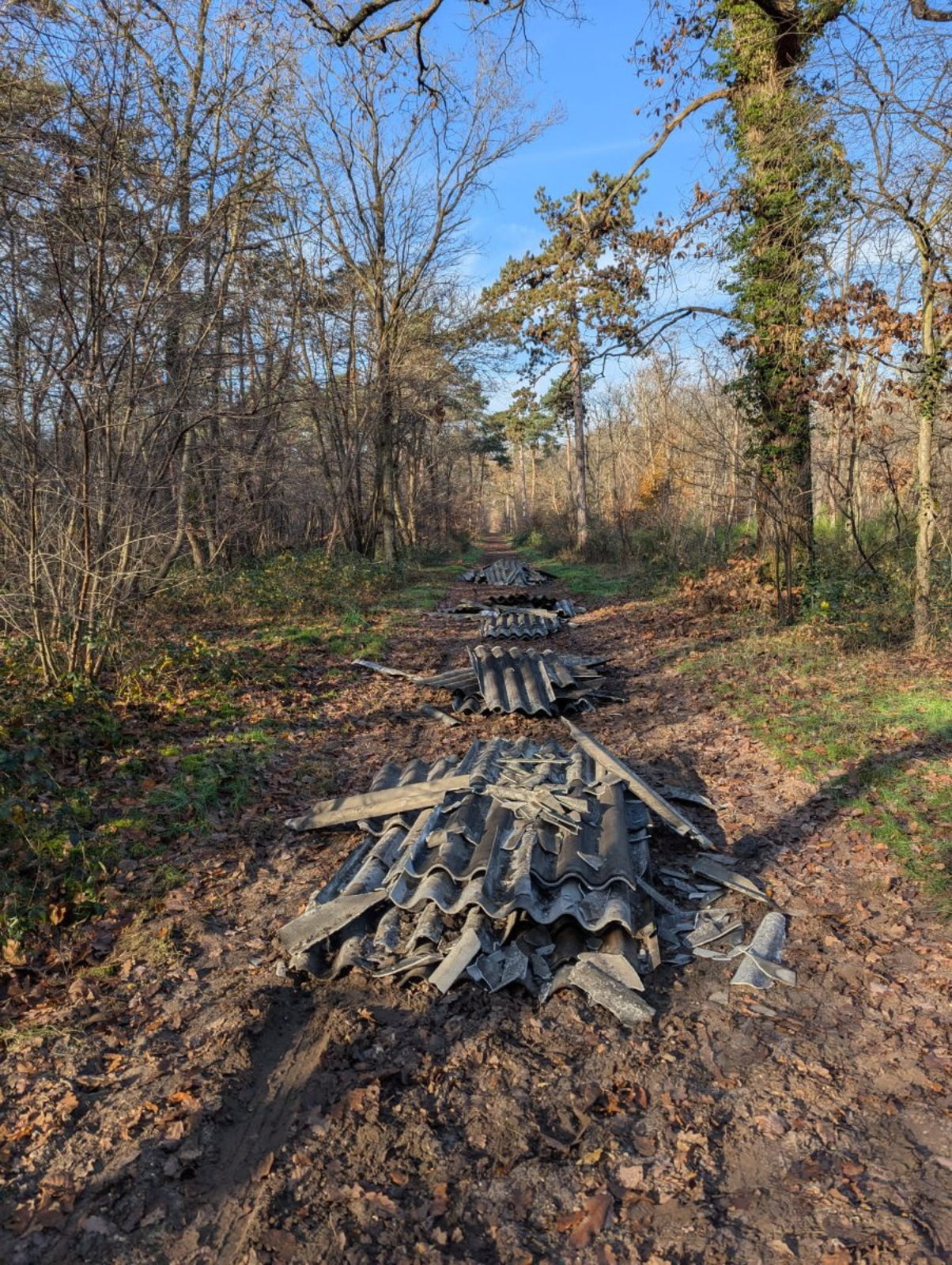 Plaques de fibrociment (possiblement amiantées).