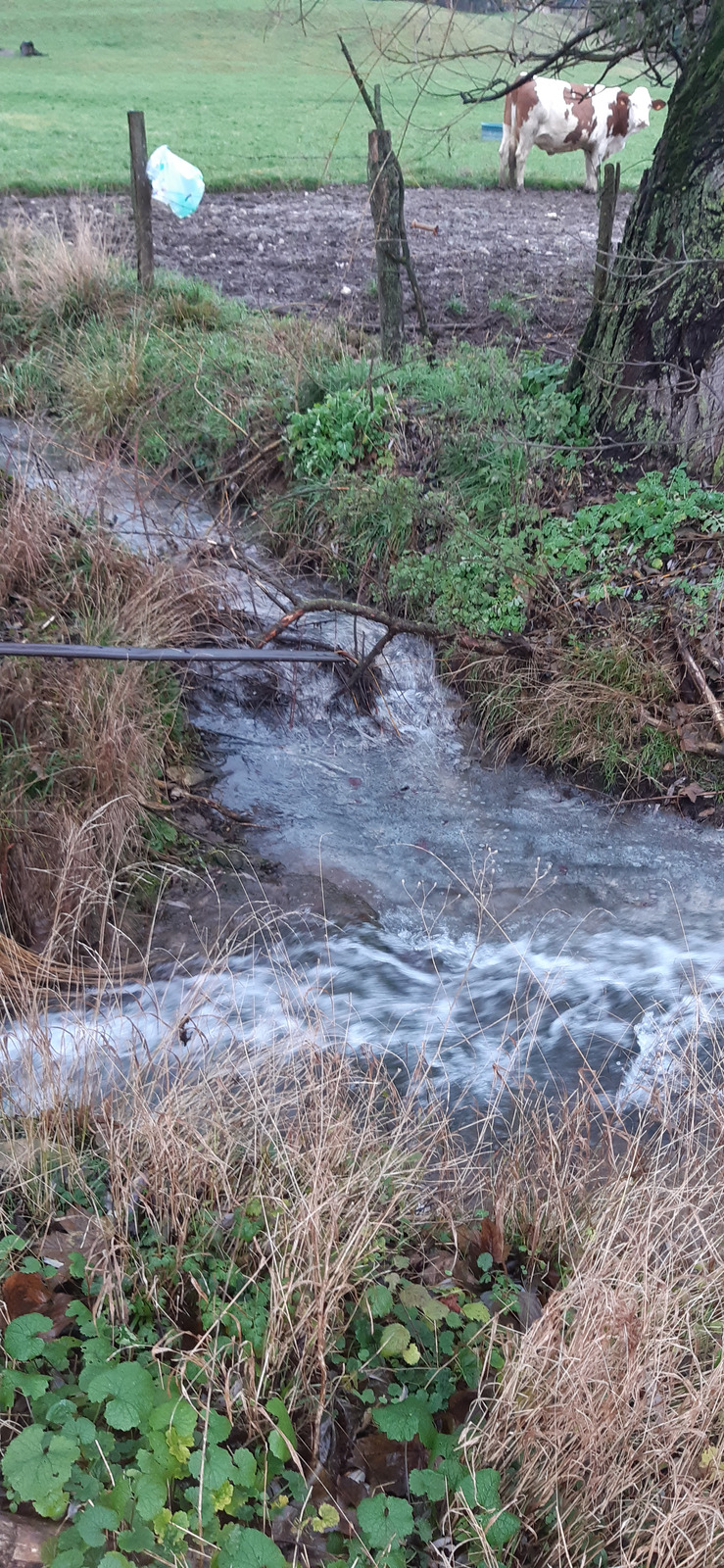 Début janvier 2025, FNE Isère a informé les service de l'Office Français de la Biodiversité. Elle a également prévenu son association locale Le Pic Vert, qui s'est rendue sur site le 13/01/2025. Elle a pu constater le déversement d'eaux usées dans le ruisseau. Il s'agit d'une pollution pérenne.