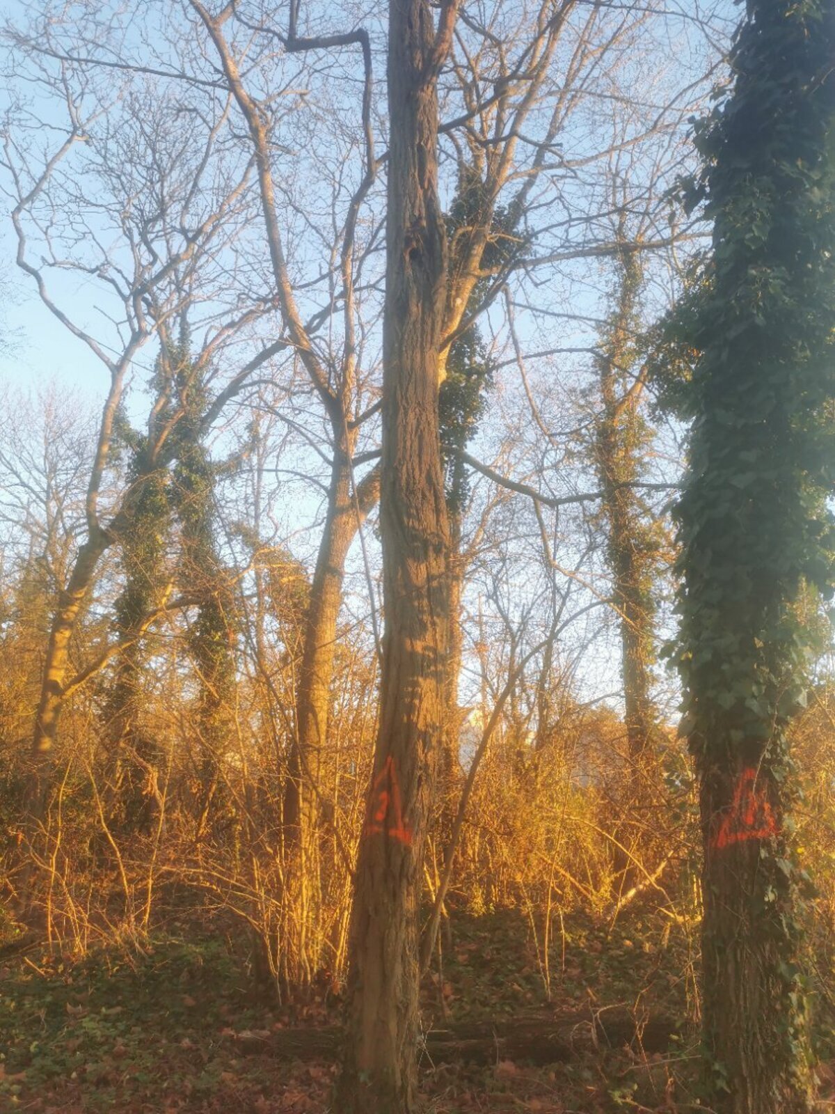 Dans le parc du Château d'Issou, de nombreux arbres ont déjà été coupés dans le parc. Or deux arbres sont marqués pour un prochain abatage. Ils présentent des cavités de pics et sont donc un habitat et site de repos d'une espèce protégée. L'arbre ne semble pas présenter de risque majeur de sécurité, le pendage étant à l'opposé du chemin.