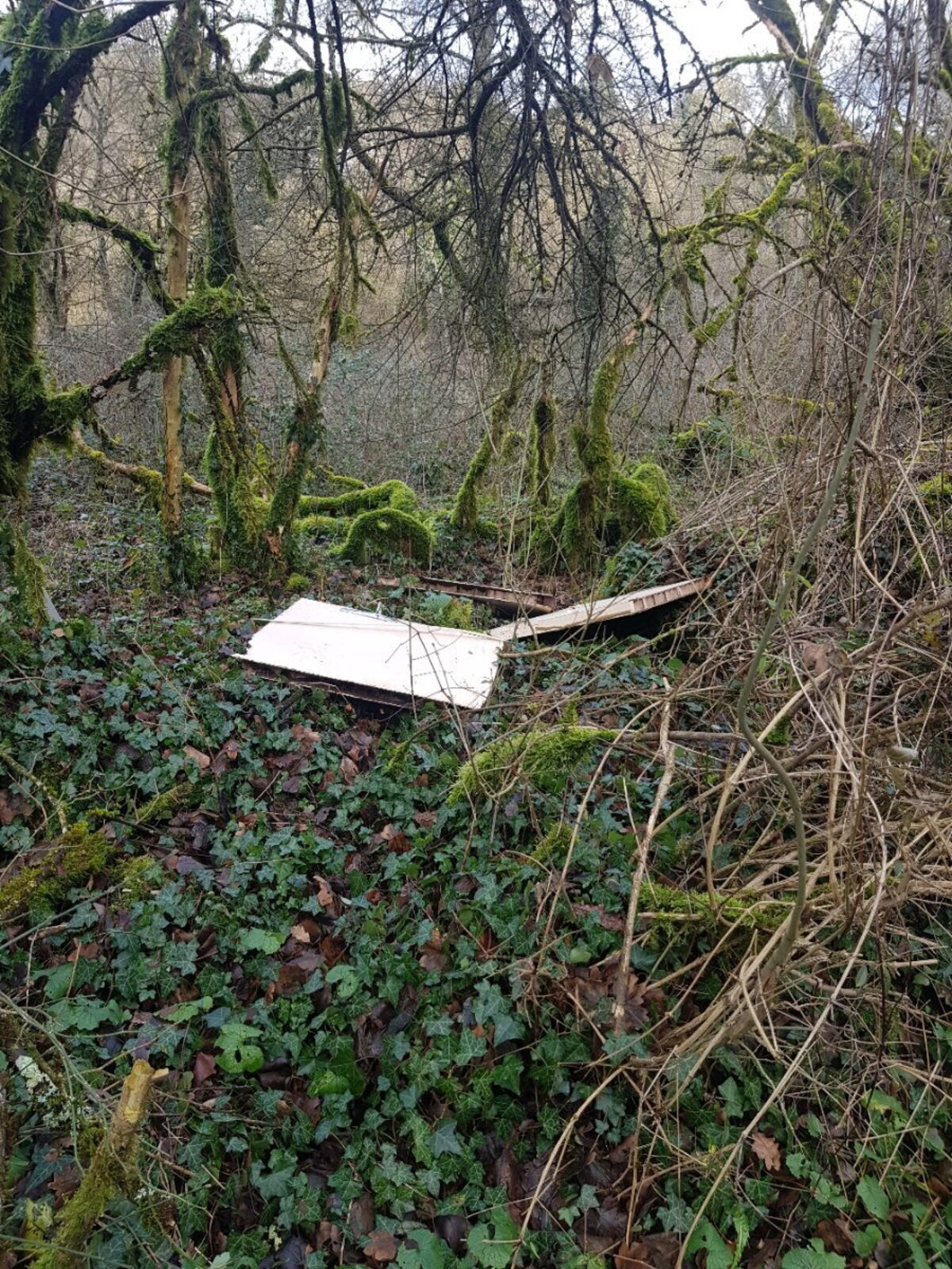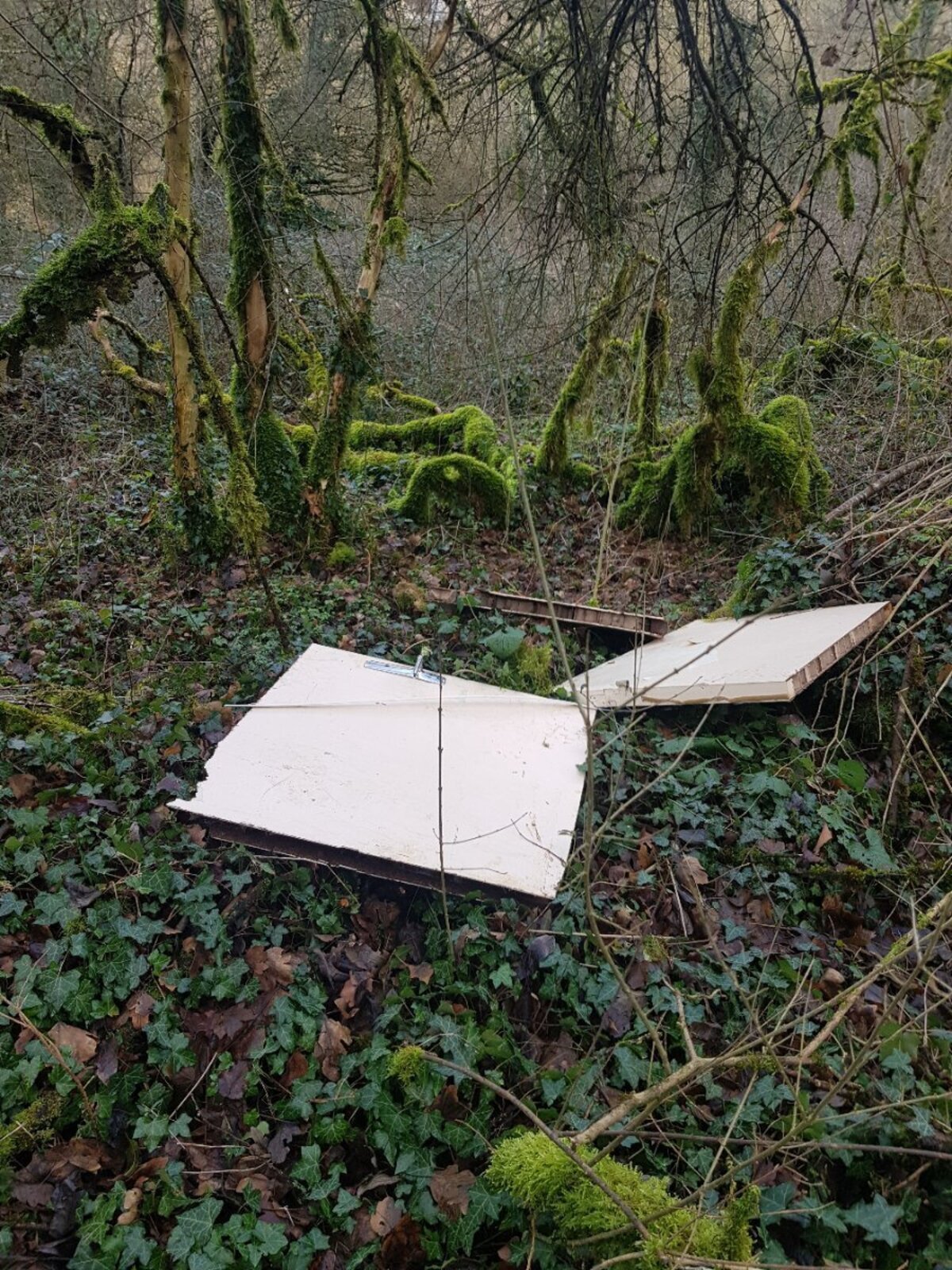Porte coupée en 3 morceaux et jetée sur le bord du chemin