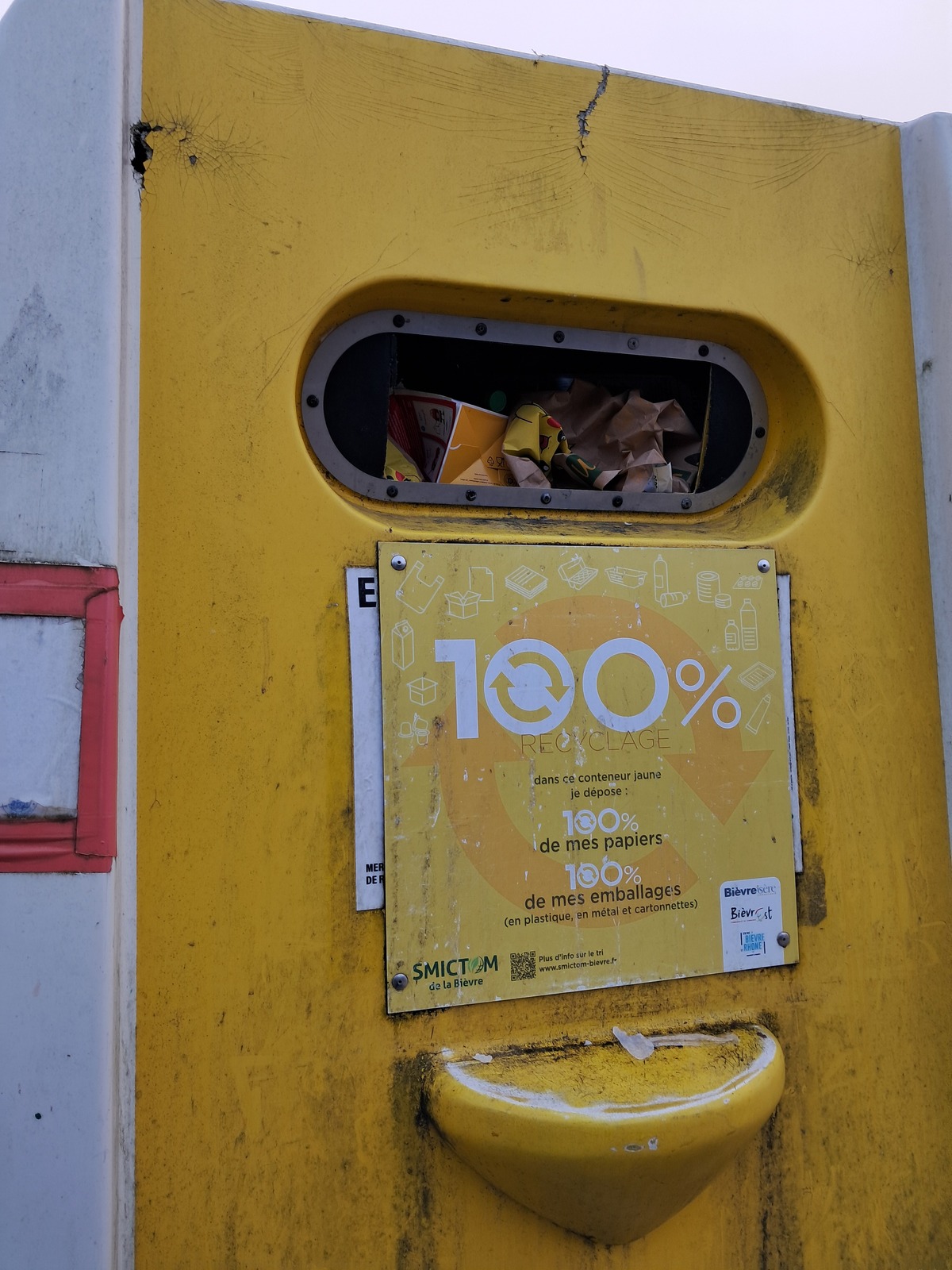 Le problème c'est que ces containers (sauf ceux du centre bourg qui ont été changé) sont inadapté à un tel tri, on ne peut pas vider correctement nos poubelles et surtout ils sont tous le temps plein (vider le mardi matin et plein du jeudi au lundi soir).