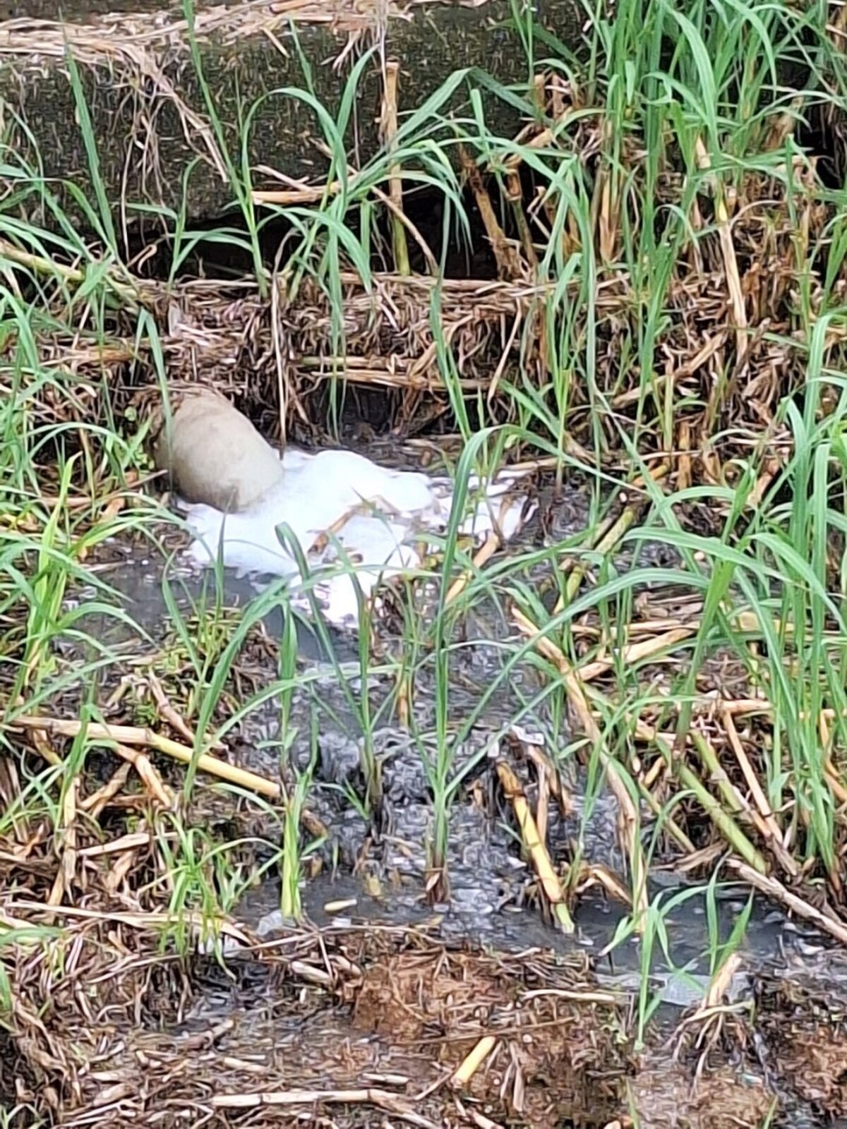 Un rejet au niveau du fossé d'eau pluviale a été constaté le 13 janvier 2025. Le rejet est mousseux