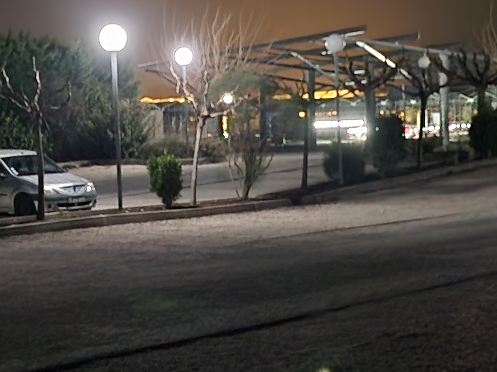 [Éclairage illégal] Le parking de la société RIJK SWAAN est éclairé par des lampadaires boules. Ces derniers, qui projettent de la lumière vers le haut, sont interdits depuis le 1er janvier 2025.