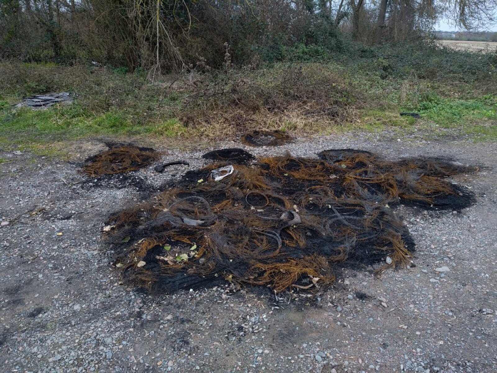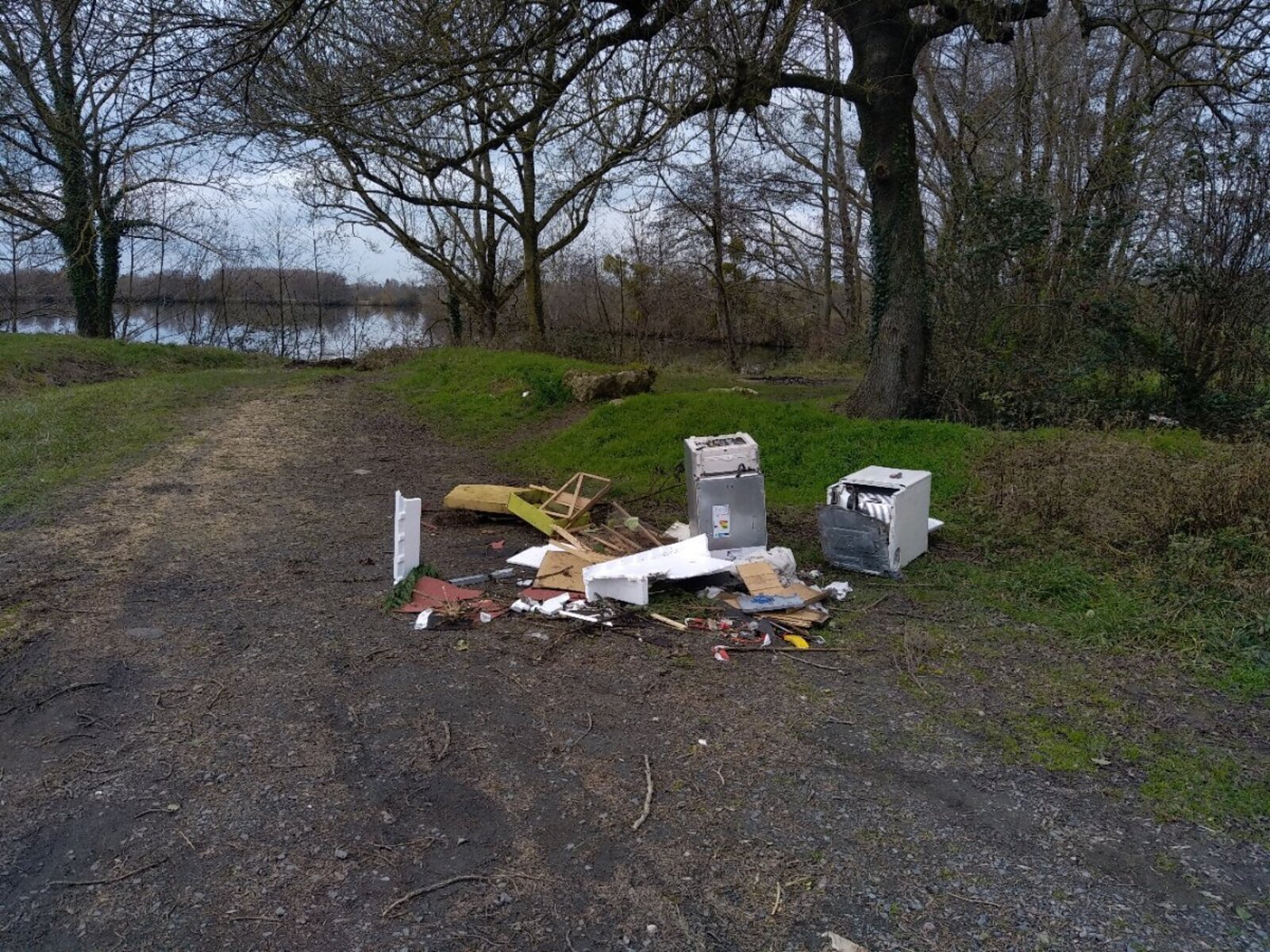 Dépôt sauvage près de la rivière et d'une voie de randonnée.