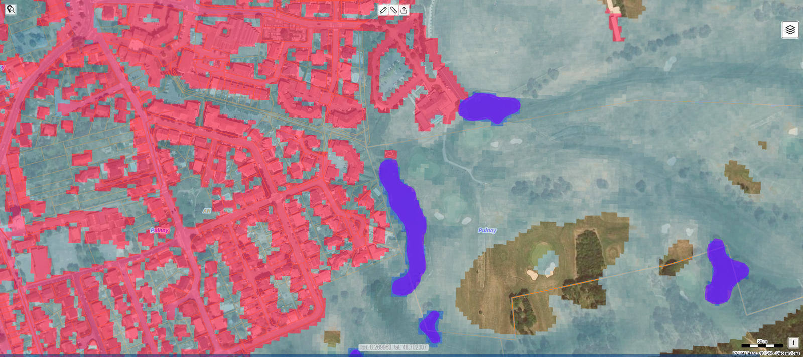 Des espèces protégées sont présentes sur la zone (https://map.gis-gr.eu/theme/environnement?version=3&zoom=16&X=697711&Y=6224591&lang=fr&layers=1750&opacities=1&bgLayer=topogg&rotation=0) dont 2 amphibiens (Crapaud calamite et sonneur à ventre jaune) protégés au titre de la Directive Habitat et 1 mammifère (Noctule de Leisler)