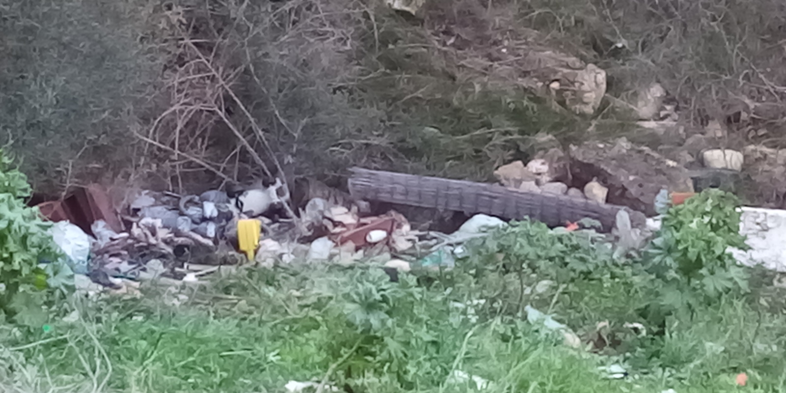 Dépôts sauvages de déchets sur le site d'une ancienne décharge, en zone naturelle.