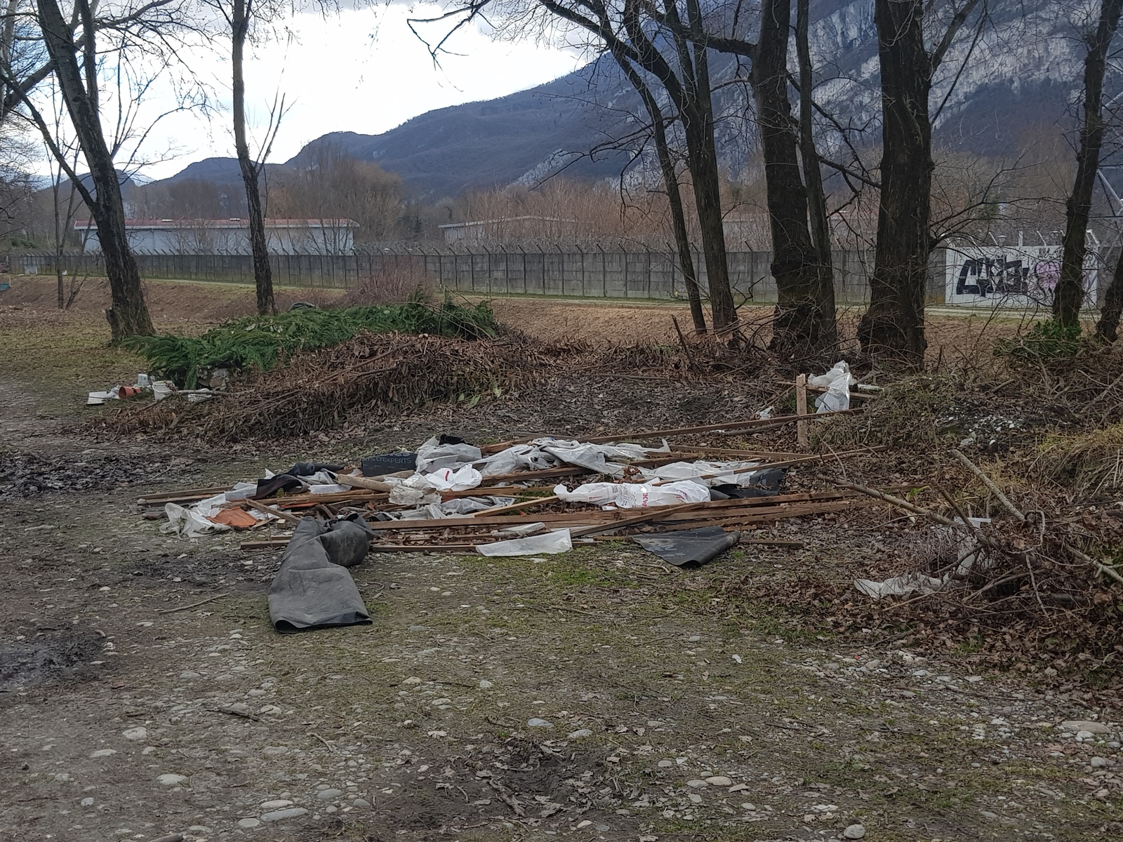 Déchets variés mélangés avec des déchets verts de quelques m3, dispersés sur 3 dépôts.