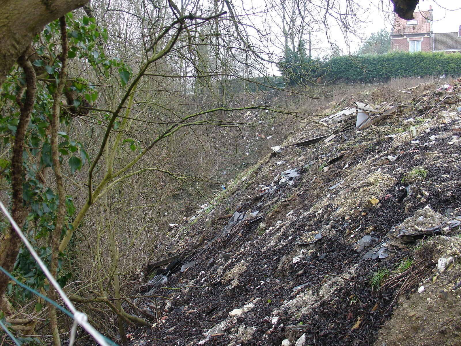 Depuis 1989 comblement d'un vallon et exhaussement illégal sur Zone UC et N et dépôt de Déchets de chantiers du BTP, (tôles fibrociments, suspicion de présence de transformateurs au pyralène).