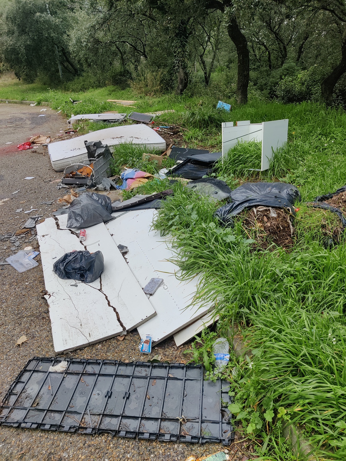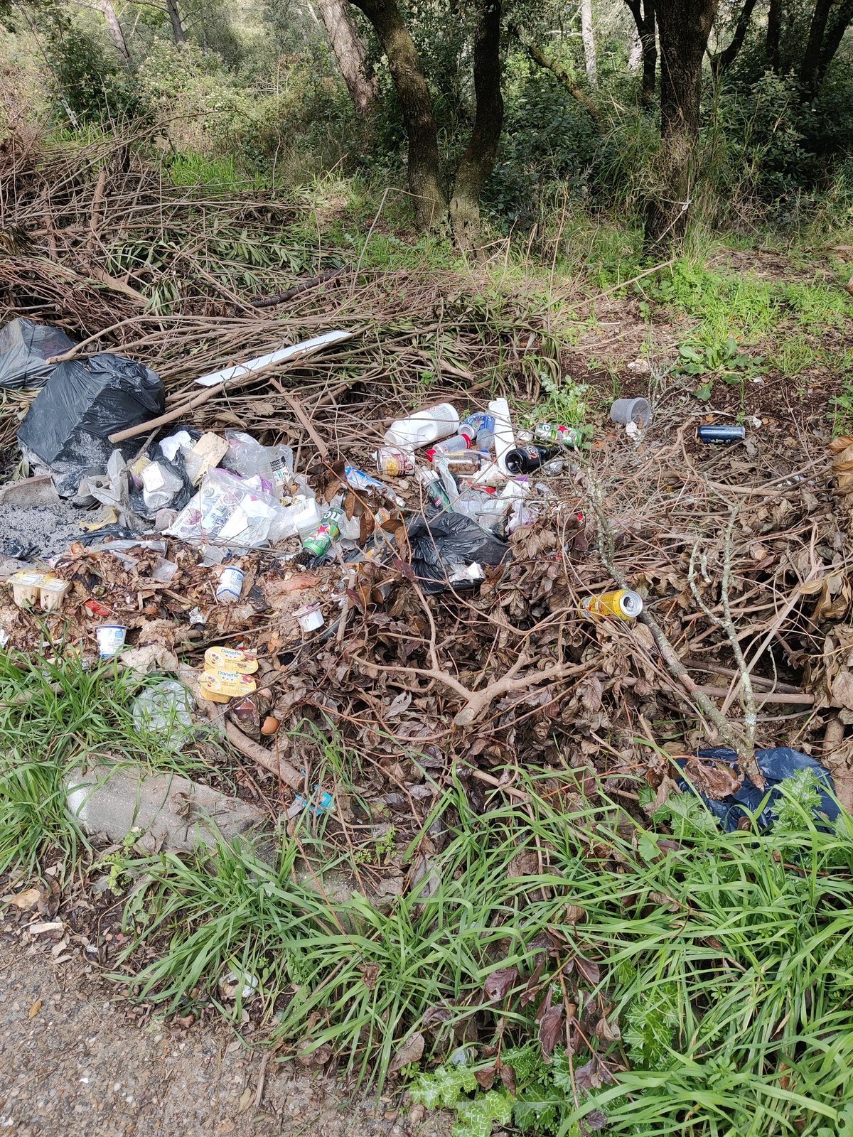 Dépôts sauvage de déchets en milieu naturel, en bord de route