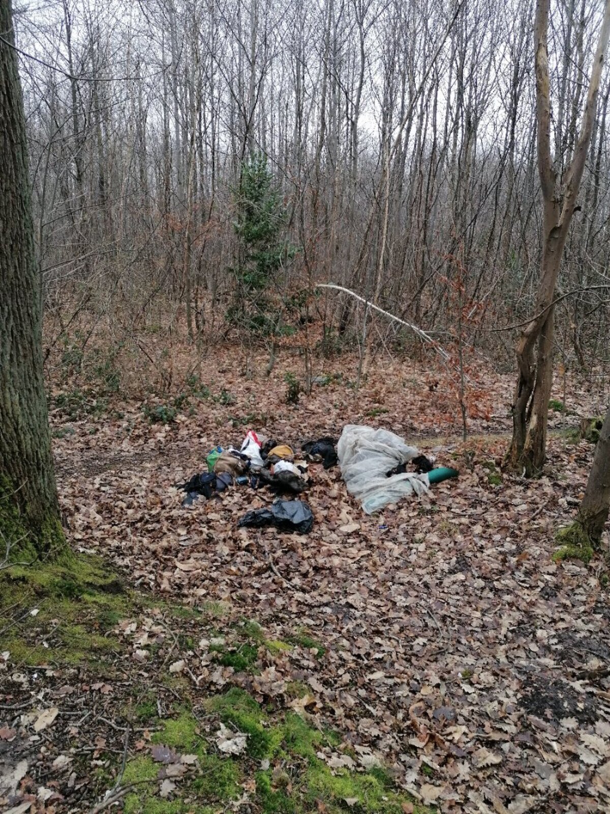Sacs poubelle abandonnés en forêt