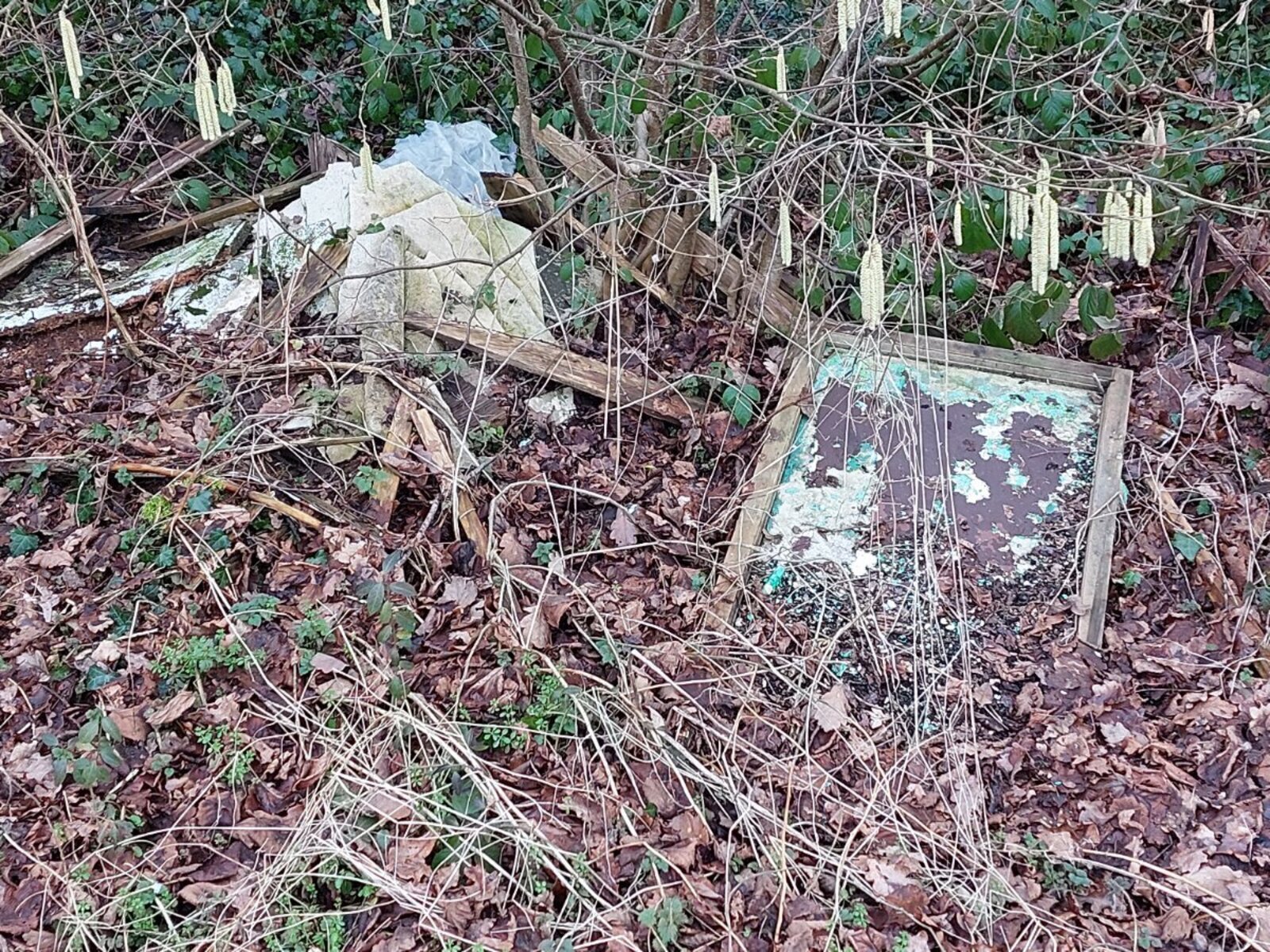 Dépôt illégal d'un panneau de bois peint, avec une hypothèse de peinture au plomb.