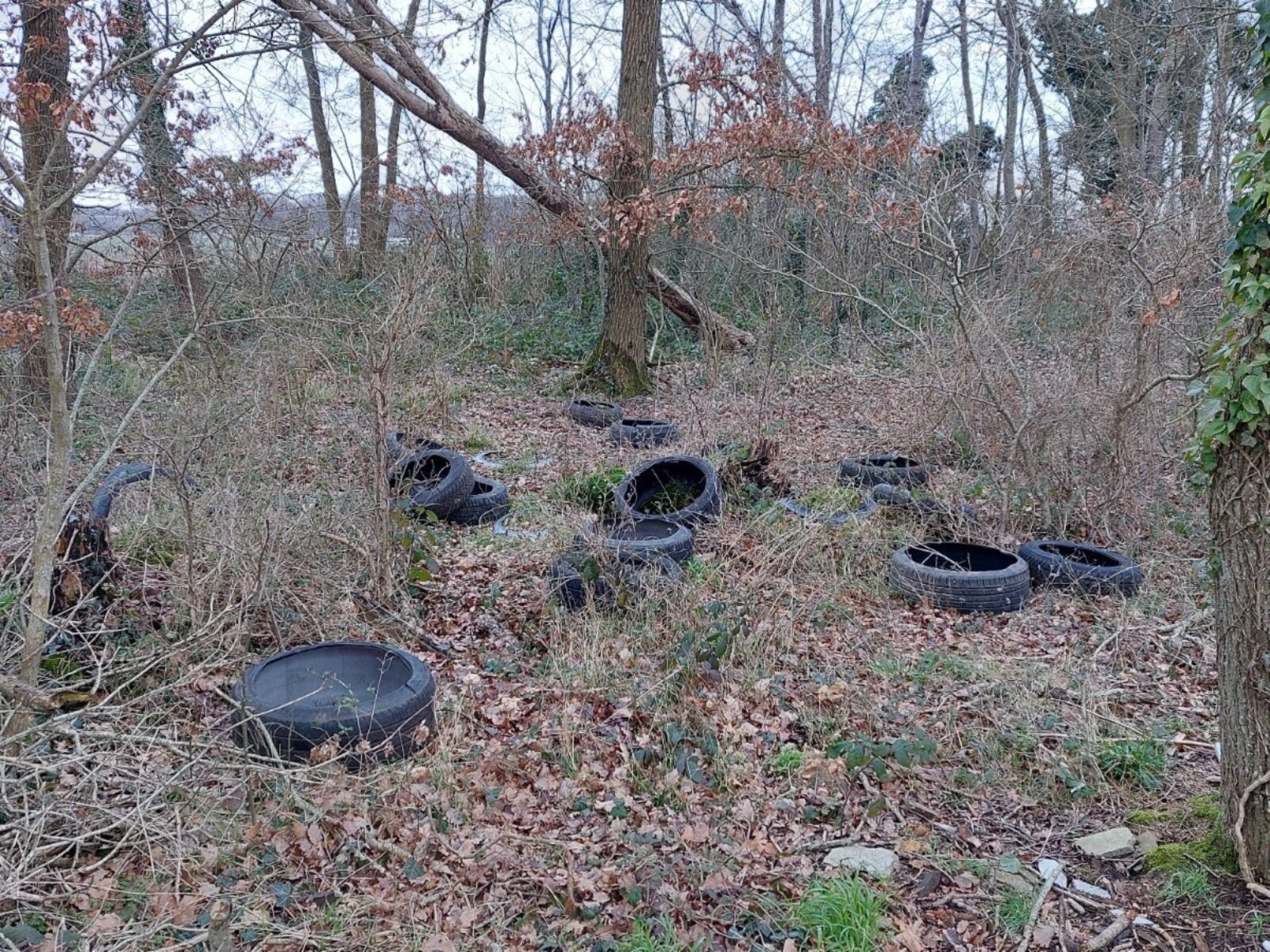 Dépôt de pneus en bord de route.
